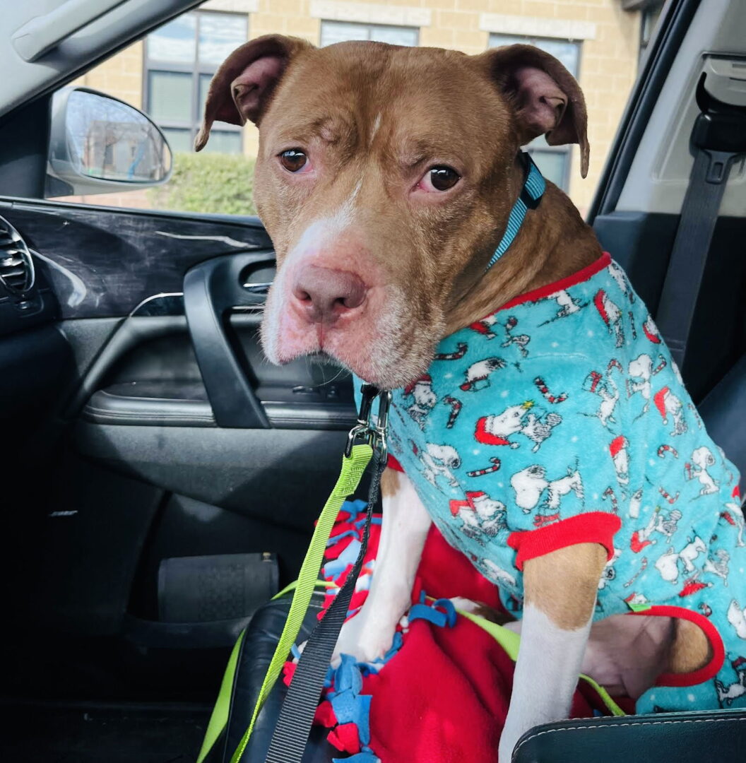 See Coco Ross’s HomepageGo to our official websiteYou can fill out an adoption application online on our official website. Meet Coco, an amazing 60-lb pit bull with a heart of gold and a serious talent for stealing hearts (and maybe the occasional snack—he’s a professional smuggler, after all!). Coco is food-motivated, but don’t let that fool you—he’ll happily abandon treats for quality couch time with his person. He’s a true snuggle bug who loves being close. When you’re cooking, you’ll often find him right by your side, leaning against your leg like the loyal companion he is. He enjoys going for walks, especially when the weather cooperates, and prefers to skip outings when it’s bitter cold. Luckily, Coco loves wearing his sweaters and looks quite handsome staying cozy. When it’s time to rest, he sleeps soundly in his crate at night (snoring included!), and during the day he enjoys having free rein of the house. Coco is a loving, laid-back guy looking for a home where he can enjoy comfy naps, gentle walks, and plenty of affection. If you’re searching for a loyal companion who will always be by your side, Coco might be your perfect match. Take a look at this video — Coco Ross is so smart ! Coco Ross is from a local impound. If you are interested in getting to know this animal better, please fill out an adoption application. An adoption application is the best way to show your interest in an animal and is not a binding contract. To learn more about Ruff Start’s adoption process and the care our foster animals receive, please visit our How to Adopt page. If you are unable to adopt but want to help this animal and others in our care, you can donate to support the medical and veterinary needs of all Ruff Start Rescue animals. Click here to watch a video of Coco Ross.