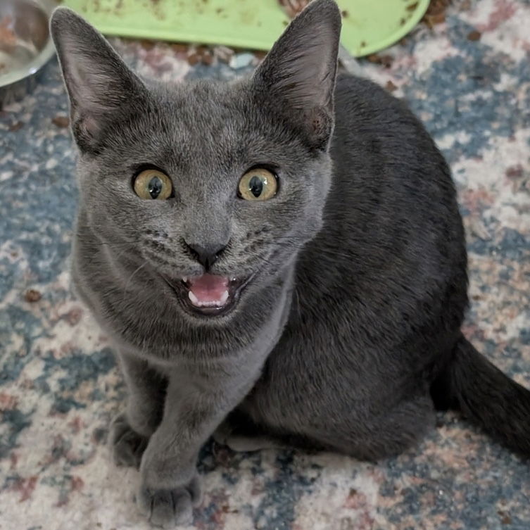 This gorgeous gray girl is as elegant as she is endearing. With her soft coat and gentle eyes, Coconut aka Coco might seem a bit reserved at first—but give her time, and she’ll be singing loud songs and running over to sit in your lap!Miss Coconut would do great in many types of home! Older, respectful children would be just fine, and with the right introduction, she could adjust to a mellow dog. Coconut must be adopted with one of her siblings or into a home with another young, playful kitten—ideally one with a confident streak who can show her the ropes.Coconut is a thoughtful observer who loves to perch high up on the cat tree, soaking in the sun and keeping an eye on everything below. Her favorite pastime? Bird-watching from above with a full belly of wet food and treats! She's also a big fan of the Cat Dancer toy—get it moving, and she’s ready to play.If you're looking for a sweet and vocal companion with a curious spirit and a love of sunbeams, Coconut just might be your perfect match.Apply at online application (catsfff.org/adopt)View all of our adoptable cats here (catsfff.org/cats)Our adoption fees are listed here (catsfff.org/adoption-fees)