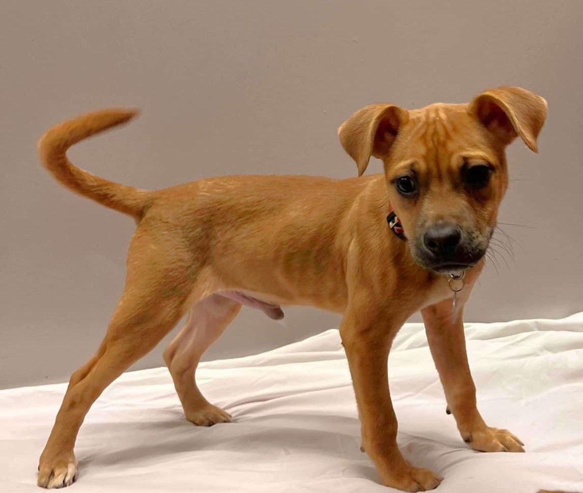 See Colby’s HomepageGo to our official websiteYou can fill out an adoption application online on our official website. Thank you for stopping by to see me! Please fill out an application to set up a private meeting. Keep checking back for upcoming events I will be attending! Meet Colby, the 9-month-old puggle-chihuahua mix who started his journey looking like a sad little potato and is now running zoomies like an Olympic sprinter! When Colby first arrived, he was malnourished, weak, and rocking some serious hip dysplasia—but let me tell you, a little love, good food, and some doggy friendships turned this guy into a whole new dog! Gone are the days of him curling up in our laps in pain, looking at us with those “I’m happy, but also my joints are garbage” eyes. Now? Now he’s a certified wild child. He’s zooming, he’s wrestling, he’s chasing his friends, and he’s probably chewing on something important right now, but we’re just happy he’s having fun. Colby’s Favorite Things: ✔ Playing with his dog friends (all sizes, all shapes—he does not discriminate) ✔ Chewing on bones (and occasionally something he probably shouldn’t, but we’re working on that) ✔ Exploring EVERYTHING (his “nosy neighbor” energy is unmatched) ✔ Meeting new people & dogs (he is the social butterfly you need in your life) ✔ EATING (this should have been first—he is extremely food-motivated) ✔ Kids! (He thinks they’re just smaller, snack-dispensing playmates) Things Colby Is Learning (A.K.A. “Work In Progress”) Kennel training: He’s working on it, but he’s still convinced that life outside the kennel is far superior. Potty training: He’s trying very hard, but sometimes he gets distracted by the important business of playing. Leash training: Ah, yes. The leash. Colby does not understand why a weird rope needs to be attached to him for walkies. We tell him it’s “normal,” but he remains highly suspicious. Colby’s Ideal Home Colby doesn’t need a fence, but he does need a family who will help him with his leash skills. He gets along with ALL dogs, is curious about cats but not obsessed, and adores kids. He’s looking for someone to continue his training, keep up with his zoomies, and provide an unlimited supply of treats (not a requirement, but highly encouraged). Colby started life a little rough, but now? Now he’s THRIVING. And he’s ready to thrive in YOUR home. If you’re looking for a spunky, hilarious, snuggly, food-obsessed best friend, Colby is your guy. Apply today before he zooms right past you! I’m a growing puppy and I have not yet had a lot of experience with crates, kids or cats and I might bark if something alarms me, but I really love to learn and hoping for a family who will take me to a basic obedience class to continue to help me build confidence and dog skills. Ideally my forever home would need to be home during the day to help me with my potty training and not leave me for breaks longer than 3 – 4 hours. If you are looking for a best friend, please fill out the puppy application. The more info you include on the application the better so I can find a good match for my forever home. Get your toy box ready! **Obedience classes are required when adopting this puppy from Underdog Rescue. Many of our puppies have a mama who was not properly socialized before coming to Underdog Rescue. Since coming to Underdog, this puppy has been in a socialized and loving home, but that needs to be continued with its Adopters. Training classes teach puppies the ins and outs of being a pet while creating a bond with their new Adopter. Obedience classes are key to creating a relationship with your puppy while having it be a happy and successful member of society. Proof of Obedience Class registration is required for this puppy before adoptions can be finalized. If you would like some suggestions, we would be happy to send some trainers who have experience with Underdog Rescue, but a Basic Obedience class in your area should work! P lease note that some of our dogs are obtained from shelters, surrendered to our care, or released from breeders. Each animal's bio is based on our experience of the animal within our care, an educated guess based on physical characteristics, temperament and information shared. Each dog receives basic grooming when coming into rescue, but for some dogs they have not received grooming attention until recently and grooming may be required shortly after adoption. This will be at the adopter’s expense, so we encourage you to research the breed and be prepared for grooming expenses. Underdog cannot guarantee hypoallergenic or non-shedding qualities of any dogs in our rescue. Some of the animals come from situations where they are lacking experience in a home and confidence in humans. In turn, they require another companion dog and/or a fenced in yard in their forever home in order for them to feel safe. If you are interested in a particular dog whose bio states those needs and do not currently have them, please understand that your home might not be the right fit. Please use the filter on our Adoptable Dogs page to find the perfect match for your home. This puppy requires an application fee. This fee must be paid within 24 hours or your application will be considered void. We will not review or contact applicants that have not completed the payment portion. Puppy Applications will be responded to within 5 business days, after receipt of the application fee. Please understand that paying the fee does not guarantee you will be approved to adopt the puppy. Our goal is place puppies in homes that are suited for their individual needs. You may be willing and able to provide a great home, but if it doesn’t meet the specific needs of the puppy, we will not approve your application. We accept applications for puppies until we have a candidate that meets all of the requirements needed for the specific puppy and they have been contac