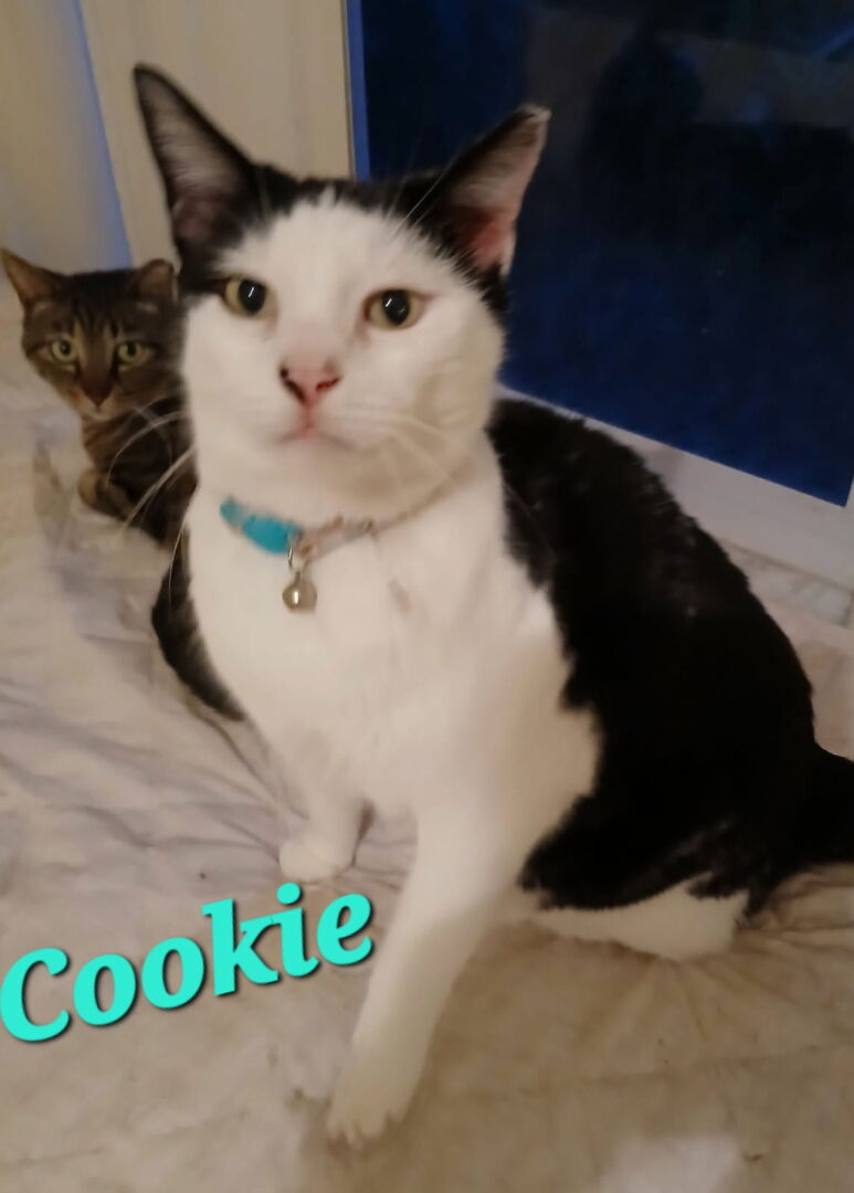 See Cookie’s HomepageGo to our official websiteYou can fill out an adoption application online on our official website. Cookie is a black and white female beauty who is very affectionate and playful. She loves her tabby cat friend Duke. She is spayed, vaccinated and microchipped. Cookie is ready to cuddle her new forever family! If you are interested in meeting Cookie, please submit an online application and contact Birgit: Bkiessling@aol.com