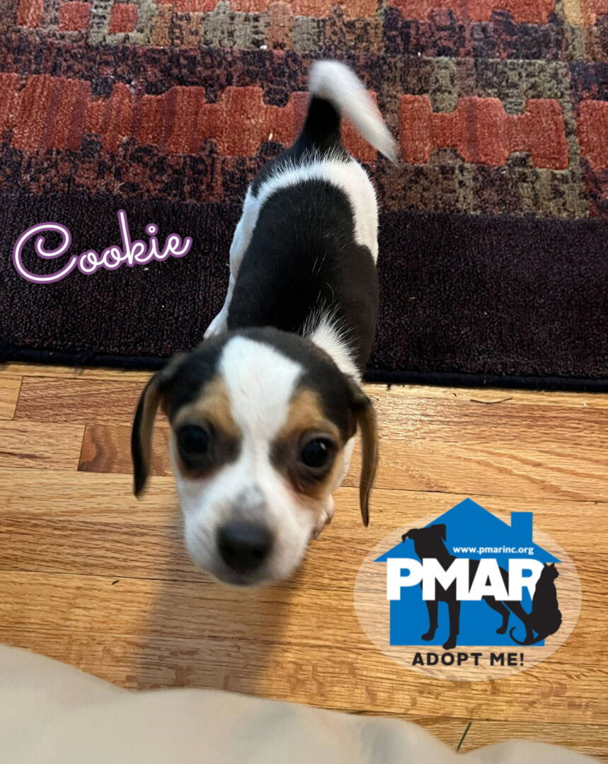 Meet Cookie—one of our sweet and snuggly "Snack Pack Pups!" This 9-week-old rat terrier/beagle mix is settling in beautifully at her foster home in upstate New York. The smallest of the "pack", Cookie’s personality is anything but—she’s energetic, affectionate, and loves meeting new friends, just like her playful siblings. Cookie will be spayed, microchipped, and is up to date on all age-appropriate vaccinations. She’s currently working on her Puppy 101 skills in foster care, but will benefit from continued training and support as she grows into the amazing companion she’s meant to be. Looking for a tiny pup with a big heart? Cookie could be your perfect match! All of our animals are examined by a veterinarian, given age-appropriate vaccinations, de-wormed, microchipped, spayed or neutered, heart-worm tested, and treated if necessary. Vet references and a home/family visit are required, and an adoption fee applies. Transport options are available within our area of operation, including Pennsylvania, the tri-state area, and New England. Please note we do not adopt animals into Canada. Visit www.pmarinc.org for more information, and to fill out an application. All of our animals are examined by a veterinarian, given age-appropriate vaccinations, dewormed, microchipped, spayed or neutered, heartworm tested and treated if necessary. Vet references are required and prior to adoption a home inspection will be conducted. Transport options available. Adoption fee applies. If interested go to www.pmarinc.org for an application.