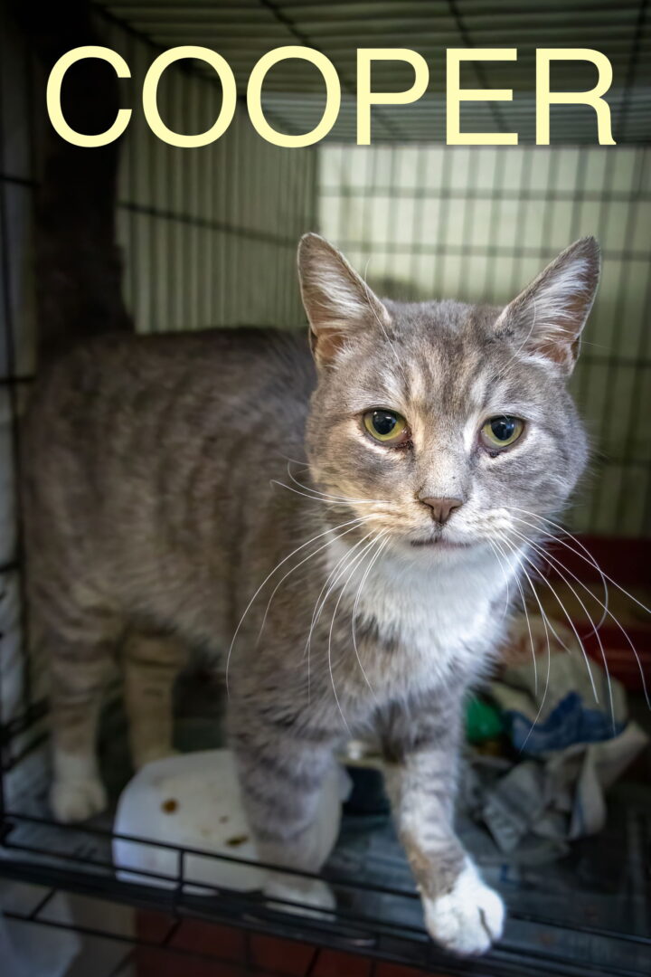 Cat-Friendly!! This very friendly, handsome boy is Cooper! He is really sweet, likes attention. When I entered his room, Cooper got up and came right over for pets. Such a friendly greeter! Maybe he would be the perfect greeter and devoted new member of your family! What a vision in gray and white Cooper is! Check out his tabby stripes in shades of gray, his showy white tuxedo and white paws, and those bright green eyes. Be sure to watch Cooper’s short video: https://www.youtube.com/shorts/adacH2BzkI0 . Please submit our no-obligation Adoption Application for a meet and greet or to adopt: https://forgottencats.org/adoption-application/. Not ready to adopt? Please consider fostering: https://forgottencats.org/foster-a-cat/. Thank you! (Foster: Trainer)