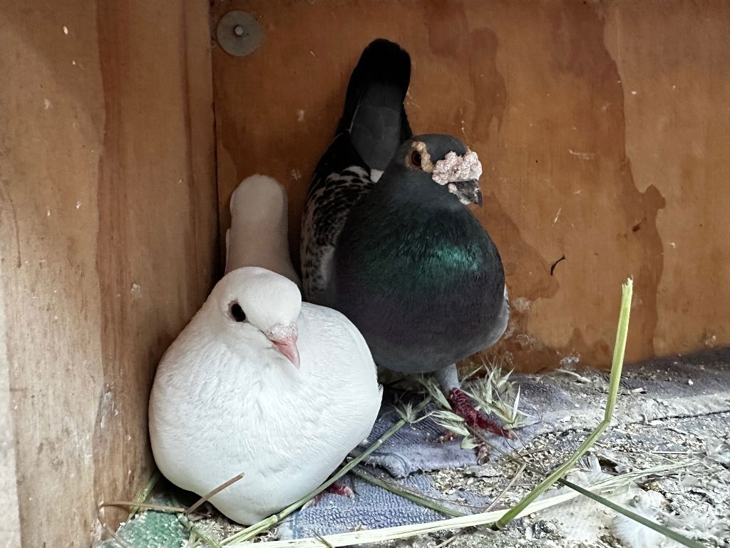 11/15/19 Update: Cooper’s beautiful wife Boba passed away as a result of reproductive disease & subsequent kidney failure. Despite her illness, they were comfy & happy (thanks to their foster volunteer & avian vets) & honeymooning right up till the end. The widower Cooper is now single & in time, will remarry.Cooper is a very sweet, soulful pigeon who is very happy to be married to Boba (also a pigeon racing survivor). Cooper & his rescue-pal Wicket were ‘surplus’ racing pigeons that were sold for use as ‘dog birds’ (to train hunting dogs). Their wings & tail were cut as short as possible, the shortest I’ve ever seen. They couldn’t even jump up on the low ledge in my aviary. They were found stray in a South Bay parking lot (likely bought & ‘released’ where feral pigeons live by someone thinking they’d be able to survive, they wouldn’t have). They were very lucky to be rescued in time & taken to the Wildlife Center of Silicon Valley who helped them until Palomacy could take them into foster care. Pigeon racing kills birds in lots of different ways. #FlyYourOwnDamnRacePlease apply to adopt http://www.pigeonrescue.org/birds/apply-to-foster-or-adopt/