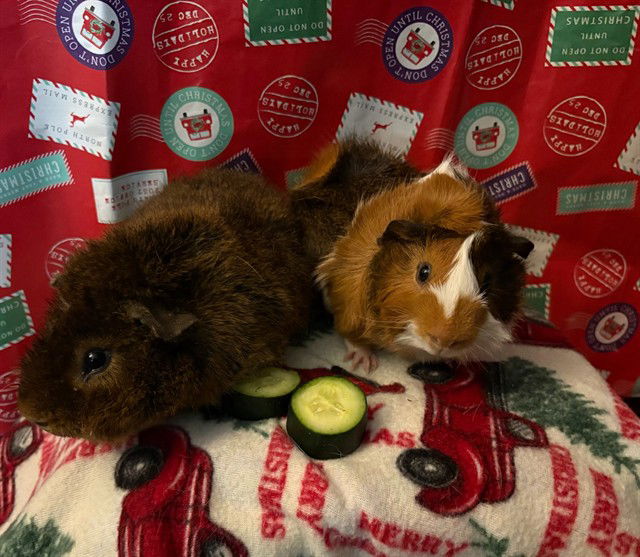*** CURRENTLY IN FOSTER ***Corky and Porky come as a dynamic duo. These sweet 5 month old boys are a little shy at first when you pick them up but they quickly melt in your arms. They love their veggies and hay. If you are looking to add some squeaks to your life, please reach out to the foster email at hsccfosterteam@gmail.com and provide your contact information. We will be happy to put you in touch with the foster for more information.Their adoption fee is $20 andf they must be adopted as a pair.