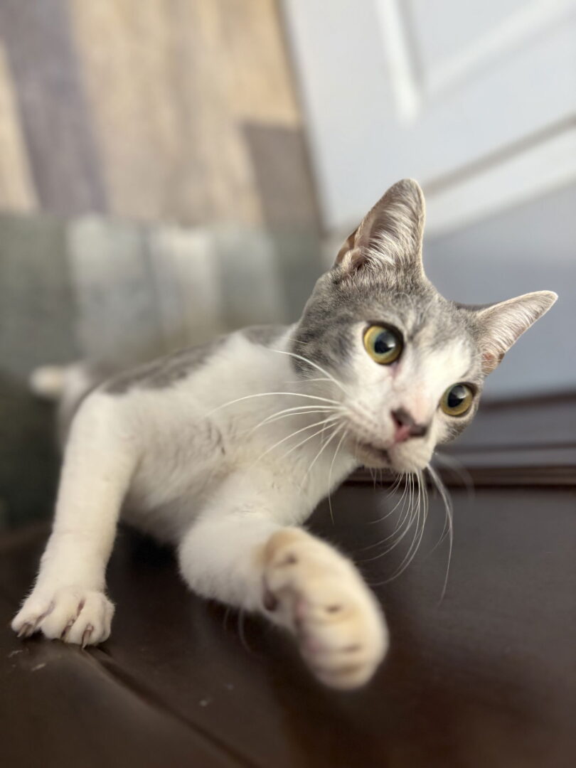 Couldron is an 8 month old very affectionate boy! He came to our rescue with a massive wound on his face and was nursed back to health. At first he is shy but once he warms up he will be glued to you! If interested please apply via the link: https://www.shelterluv.com/matchme/adopt/CHR/Cat