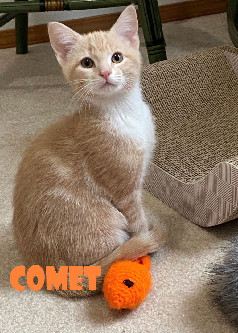 See Counting Stars with Kittens’s HomepageGo to our official websiteMeet the counting Star kittens. 2 sisters and 2 brothers (counting Orion) These star gazers would live to be adopted with one of their siblings. They are social, happy and enjoy life. Please read about each one. Comet. He is the cream color bullseye adventure kitty, who does not shy away from anything when he is on an adventure. He is the first one to step out and tell his siblings to follow him. Orion is Comets brother who is currently being fostered with Marlie. He was chosen to keep Marlie company so she would not be alone. However, Orion does miss his siblings. Back to Comet! Comet when given the chance will take full advantage of human attention and play time. Once he is resting he will be curled up next to you. Nova is the calico beauty who follows Comet. She will follow Comet into playtime and romp around chasing feather toys and darting into play tunnels. Nova gets along with her siblings and is a well adjusted kitten. She is social and enjoys human attention. Celeste, is the cute and innocent face of the light brown tabby. She is more on the quieter side, like her brother Orion. It takes her just a wee bit of time to feel comfortable with any new changes. But once she is comfy, she is a kitten dream come true, a social, playful and total sweetheart. These kittens would all do great in a home with another friendly feline buddy. They seem to need that extra feline pet companionship. We have added Orion and Marlie's photos to this bio so you can see who they are and look them up under their bio "Friends Marlie and Orion" Please consider adopting a pair of siblings or even Marlie who adores other kitties. For more information on meeting and adopting this kitty, please fill out a pre-adoption application under "ADOPT" on our website at WWW.CATSCRADLERESCUE.COM. Your information will be forwarded to the foster parent for follow-ups and meeting arrangement. $200 Adoption fee for a pair and $100 as a single. Includes spay/neuter, microchip, worming and flea treatment, current vaccines, and negative FIV and FeLV test. Cat's Cradle is an all-volunteer, non-profit foster-home based rescue serving Oregon cats who need new homes. 100% of your adoption fee goes to provide for the medical and physical needs of the cats in our care. We invite you to become a foster parent and experience the great satisfaction of helping a cat or kitten in need.