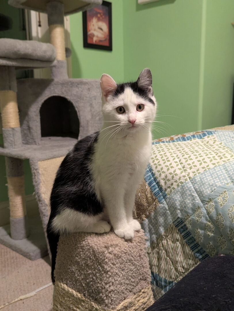 THIS IS A COURTESY POST, NOT A PALS CAT. PLEASE CONTACT Beth Jacksier bjacksier@bridgeportborough.org FOR INFO The black one is a boy, Dino, and the others are girls. The one with the black mask is Frankie and the one with the entirely white face is Rosa. This bunch of siblings are good pals! Dino is very outgoing and loves food, play, and snuggles – he is a big purr machine. He would likely do well in a home with other cats and also with children. He is the sweetest boy, loves to be the star of the show, and wants to be your best friend almost immediately! Rosa is the shyest of the bunch, but loves play and her siblings. She’ll come out for fun but she makes you work for it. She will grow to be a lovebug for the right home with time. She is close with her sister, Frankie, and would be happy being adopted with her or by herself. Frankie is cute and cuddly in the best of ways. She tends to be shy, but once comfortable, she will come out and play all day! Frankie is the fluffiest girl and will likely big a big snuggler once she gets cozy in her forever home. She loves her sister, Rosa, and would enjoy being adopted with her or by herself. These kittens will be fully vaccinated, fixed, and ready to take home on February 12