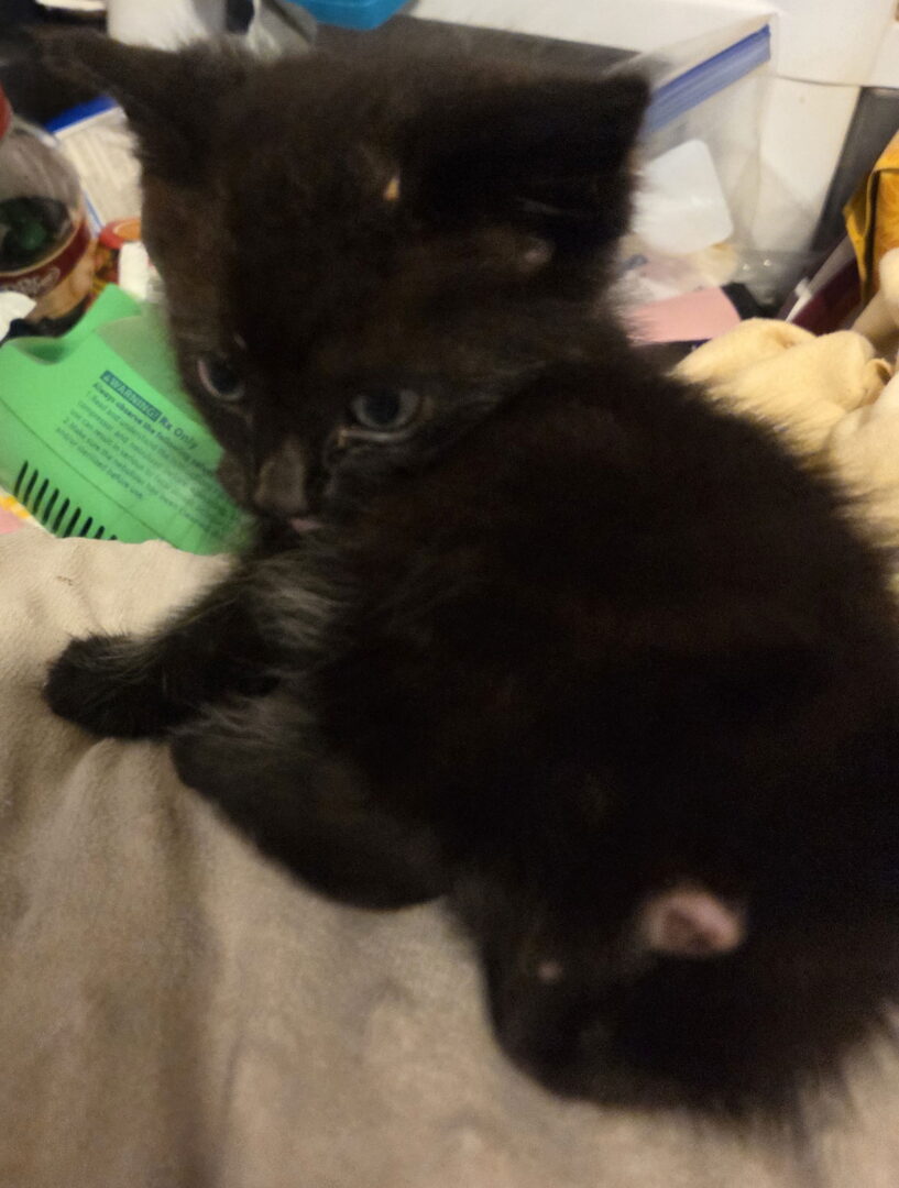 A 2 month old little boy that’s bonded with MidnightMeet the charming Cowboy! At just 1 month old and weighing in at a teeny-tiny 0.3 lbs, this little guy is ready to steal your heart! With his sleek black fur, Cowboy embodies the classic elegance of the Domestic Short Hair breed, perfect for any stylish home. But don't let his size fool you; he's packed with personality! Cowboy is a social butterfly who gets along famously with cats, dogs, and even children! Talk about a versatile companion! However, he’s still learning the ropes of being a well-mannered kitty, so some training will be in order. Think of it as an adventure you can embark on together! Cowboy is not neutered yet, and he’s looking for someone who can help him grow into the fabulous feline he’s destined to be. Are you ready to show this little bundle of joy what love looks like? You can meet Cowboy in person, where his playful spirit will shine! Remember, every animal deserves a happy ending. This one starts with you!
