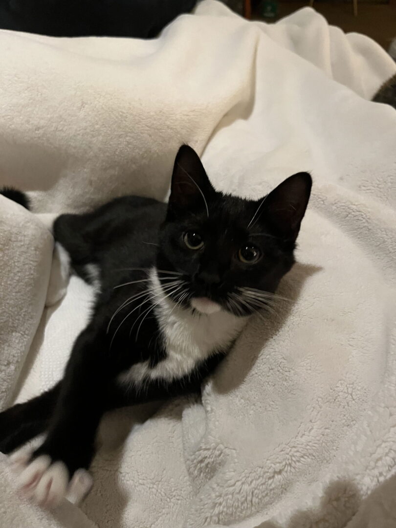 See Crisanto – KITTEN in foster’s HomepageGo to our official websiteYou can fill out an adoption application online on our official website. Crisanto's tagline should be 'whatcha doing?' because he always wants to know what you're up to. Crisanto is a purring machine, who might just flop over when he sees you. It's not a trap, he loooves to have his belly rubbed and he'll be purring right away. He loves to be picked up and pet! You might find him in bed with you at night or in the morning trying to cuddle up. He's very food motivated and loves to play, so might be able to learn some tricks with the right motivation! He definitely needs a furry friend in his forever home. If you don’t already have one check his sister Tiera’s page. If you would like to meet Crisanto, please visit the following link to fill out an application. https://www.kingstreetcats.org/info/adoption