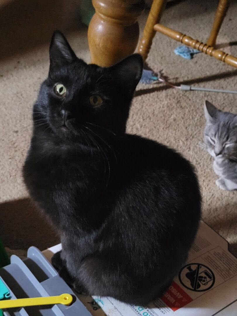 Crow is a very lovable 9-month-old guy. He can be shy at first, but once he warms up, he'll follow you around wanting attention. He loves playing with his kitten friends at his foster home and wand toys. Anything with feathers or a crinkle sound, and he comes running to play. Crow would be ok as a single kitty and would do best in a quiet home with older children or adults. He doesn't seem to mind his foster mom's big, well-behaved doggies either.