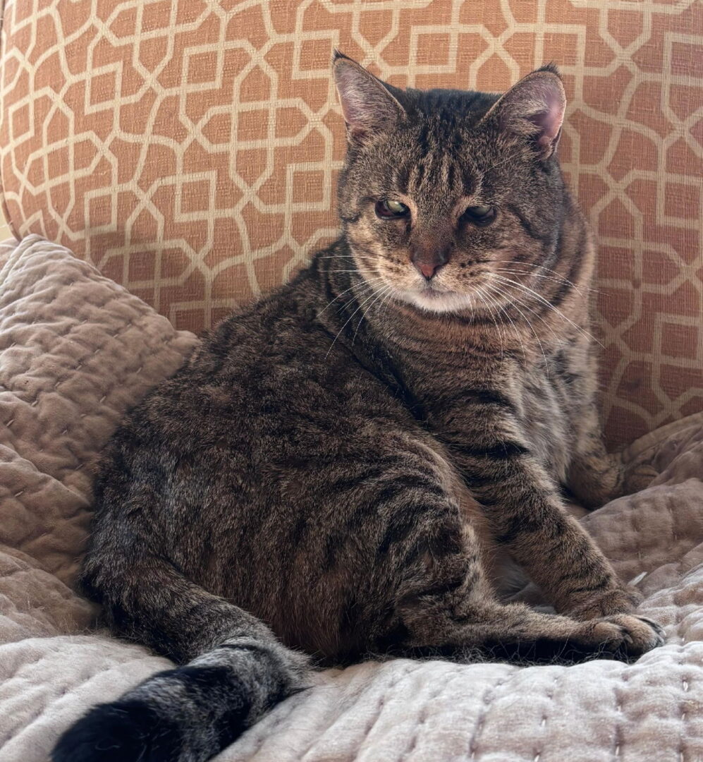 Meet Crumble!Crumble never knew the comfort of a real home until now, but this big-hearted boy has wasted no time soaking it all in. He loves a soft bed, gentle pets, and will serenade you with his delightfully twirly, rumbling purr—loud enough to make sure you know he loves you with all his heart. Crumble enjoys watching bird videos on TV and spending time with his best buddy, Sunny (FCID# 05/08/2025 – 11). Affectionately nicknamed “Rough & Crumble” by his foster mom, he’s clearly had some tough times in the past. After an eye surgery that left him looking a little “rough,” you’ll quickly find yourself focusing instead on the way he greets you every morning and wishes you goodnight. While he’s not much of a lap cat, Crumble adores attention and simply wants to belong to a family. This sweet boy—ideally alongside his buddy Sunny—is ready for the forever home he truly deserves. Crumble has never been around dogs but seems very even keel so I would think if introduced slowly, it would be fine. I think he needs a friend and would prefer for Crumble and Sunny to be adopted as a pair, but this is not 100%. Please submit our no-obligation adoption application for a meet and greet at the foster’s home, or at the Glen Mills or Brandywine Petsmart locations. Here is the link: https://forgottencats.org/adoption-application/ . Thank you! (Foster: Pam D.)
