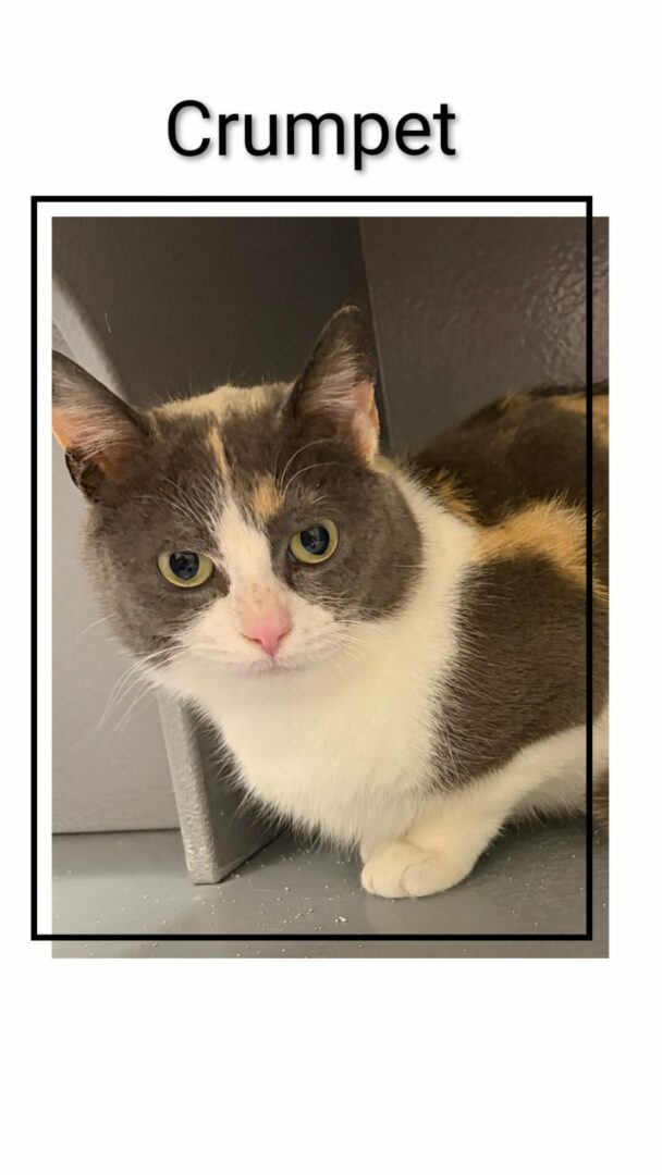 CRUMPET – DSH, female, spayed, dilute calico, DOB Aug 6/24