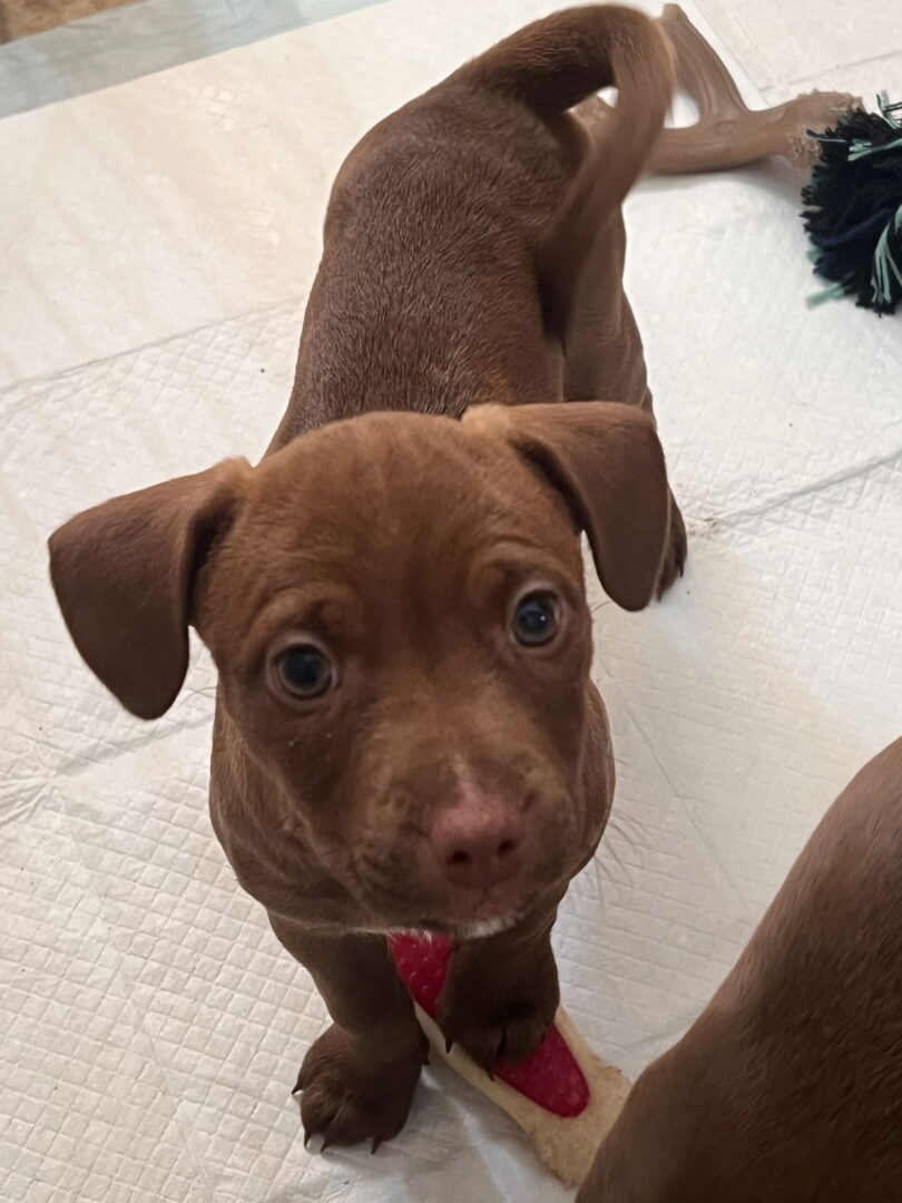 See Crunch’s HomepageGo to our official websiteYou can fill out an adoption application online on our official website.Looking for a well socialized outgoing and friendly puppy that will be a medium sized adult? Look no further. Crunch is a cattle dog cross and her mama is about 45 pounds but we suspect that the father of this litter was a smaller breed male. These puppies will all have had 2 puppy shots and microchipped. Spay and neuter will be arranged when they are old enough.