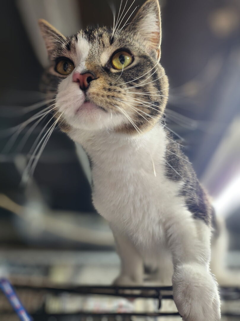 Cry Baby came to the rescue in June 2023 from an over-crowded home. He did not like the enclosure he was quarantining in until he was vetted and neutered. Crying non stop until he gained freedom to roam around with the other kitties. He is very playful and friendly. Cry Baby will come up for pets on his own time but won’t be too clingy or needy. He is ready for his forever home. If you think that might be you, please visit our website: kvckr.com and submit an application.