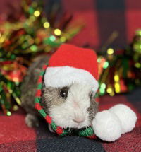 Hello! My name is Curly! I am a very nice guinea pig, but I'm a little scared of new people. Once I spend a little time with you, I'm sure we'll be best pals! Can you believe I was born right here at the SPCA? I'm bonded with my twin brothers, Moe and Larry! It's been fun growing up here but now I'm ready for our next adventure with a new family! I also love to eat! I like greens and pellets but Timothy hay is my favorite! Do I sound like a good fit for you? Come meet me today! The SPCA strongly encourages Adoption Holds to ensure I will be waiting to meet you when you arrive. To make an Adoption Hold, please call 831-373-2631. The Adoption Center is open to meet me without an Adoption Hold, however you may need to wait for an adoption time to become available and I may already be adopted. El SPCA recomienda las reservaciones para citas para asegurarse de que estaré esperando para encontrarme con usted cuando llegue. Para hacer una reservación de cita, por favor llame al 831-373-2631. El Centro de Adopciones está abierto para conocerme sin una reservación, sin embargo, es posible que deba esperar a que esté disponible el tiempo de adopción y puede que ya sea adoptado.