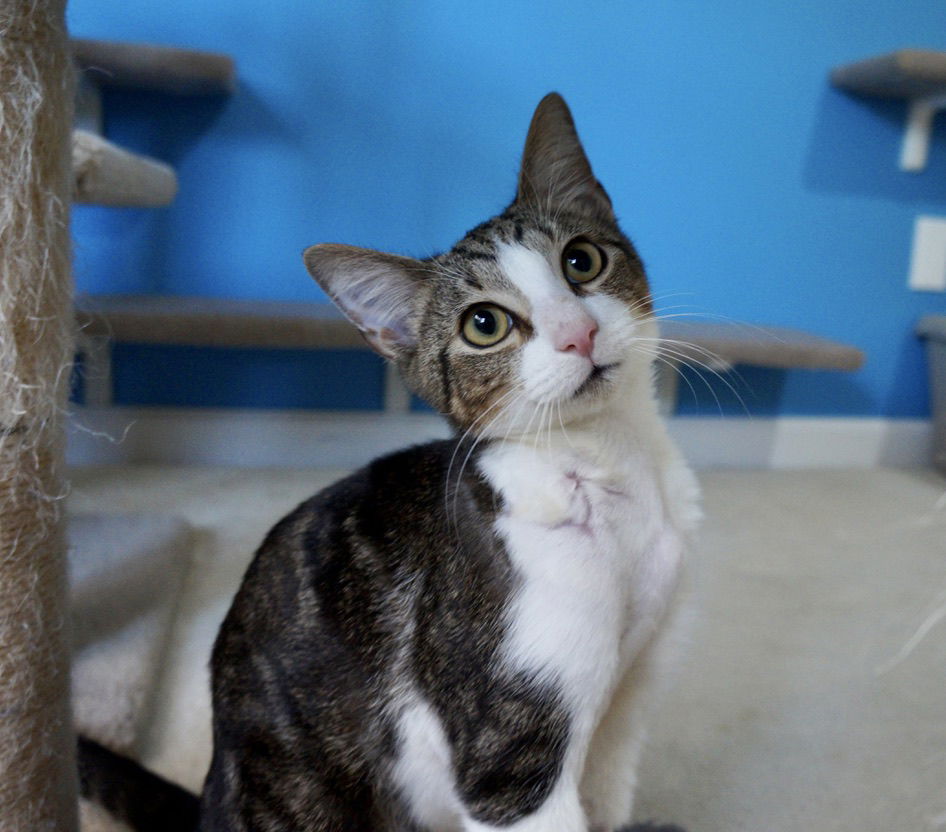 See Curtiss’s HomepageGo to our official websiteCurtiss is a 5-month-old bundle of sunshine wrapped in soft tabby fur and he’s ready to bring warmth, playfulness, and love into his forever home. This brave little guy came into rescue after being attacked by what was likely a dog or coyote. He has a few small scars on his right shoulder and torso — his foster mom lovingly calls him “Shark Bait” — but once his fur grows back, they’ll be barely noticeable. What is impossible to miss is his gentle spirit, resilience, and overflowing affection. Curtiss is a true cuddle bug who wants nothing more than to be close to his humans. He’ll curl up on your lap, nuzzle into your hand, and purr himself into a happy little puddle. He absolutely adores people. He gets along with other cats just fine, but he’d be happiest as an only kitty, where he can soak up all the love and attention you have to give. He’s playful, curious, and loves a good burst of zoomies — especially if a feather chaser or laser pointer is involved He brings a sweet, social, and wonderfully brave energy to every room he enters. If you’re looking for a kitten who will greet you at the door, keep you company, and snuggle close every evening, Curtiss might just be your perfect match.