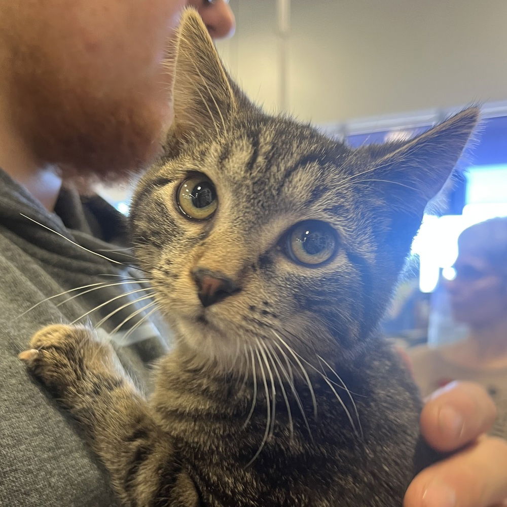 Meet Cyrus! A social butterfly with a calm and gentle demeanor, Cyrus enjoys playing with string and feather toys, as well as interacting with his sister Cleo. He has a sticky grip superpower, always holding on and not wanting to let go. Cyrus is a cuddle lover and loves spending time on his families lap. Cyrus thrives in a household where he can have both human company and quiet alone time, especially when cuddling with his sister Cleo. He's good with children and enjoys the presence of other pets, being a friendly and affectionate feline. He loves his sister and would love to be adopted into a home where he can enjoy the rest of his life with his best friend.Cyrus quirky trait is fascinated by running water and loves to watch it flow. He fell into a sink once while the water was running he loves it that much! Cyrus's favorite activities involve playing with toys on a stick and string, a surefire way to keep him entertained and happy.Just like you, Cyrus needs his rest. Whether it's snuggled under a blanket with his head on a pillow or just peeking out, he knows the importance of a good night's sleep.If you're looking for a sweet and playful companion who loves cuddles and quality time with his feline sibling, Cyrus could be the purrfect addition to your family. He would bring and discover the joy of having this charming little guy in your life!WE DO NOT HAVE A PHYSICAL LOCATION AS WE ARE A FOSTER-BASED ORGANIZATION. PLEASE SUBMIT AN APPLICATION TO BE IMMEDIATELY CONNECTED TO A SCREENER.Apply at online application (catsfff.org/adopt)View all of our adoptable cats here (catsfff.org/cats)Our adoption fees are listed here (catsfff.org/adoption-fees)