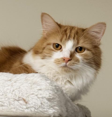 Dahlia is one of six beautiful young cats who are all related or close friends. They are 8-10 months old, except for mama Hope who is 2-years-old. We will only adopt these cats out in pairs. These kitties were rescued when they were already half-grown. They are still shy of being petted, although they enjoy human company and playtime. They will need cat-savvy, loving homes where they can continue to deepen their trust in humans. With a little time and patience they will become loving pets in the right hands. Food is the way to their hearts. Dahlia is an orange/white longhair girl with beautiful amber eyes. She purrs up a storm when her caretakers visit. She wants to be close and will soon dare to be petted. Brie is a sweet little calico girl and the most outgoing of the group. She is very curious, always first at the door when meals are offered or when interesting things are happening. Winnie is a gorgeous long-haired calico girl who likes to lounge on a cat tree like a princess. Fig is a very handsome long-haired tuxedo boy. Once he comes out of hiding, he is a goofy, playful chap. Ariel is a very observant, bright little tortoiseshell girl. She likes to lie on a high wall shelf and slow-blink with you from a safe distance. She loves to explore new spaces and find out what’s going on. Hope is the 2-year-old mother and auntie of the younger cats. They all love and respect her. She is the shyest of the group, but there is something very endearing about Hope and her gentle presence. She has gone through very hard times and would love to be in a safe and caring home. You can visit these cats in the ‘Romper Room’ at Kingdom Animal Shelter on Saturdays from noon-3pm. Please note that Kingdom Animal Shelter is not a ‘same day’ adoption shelter. Please visit our website at http://www.kingdomanimalshelter.com/adopt-a-cat.html to learn about our adoption process.