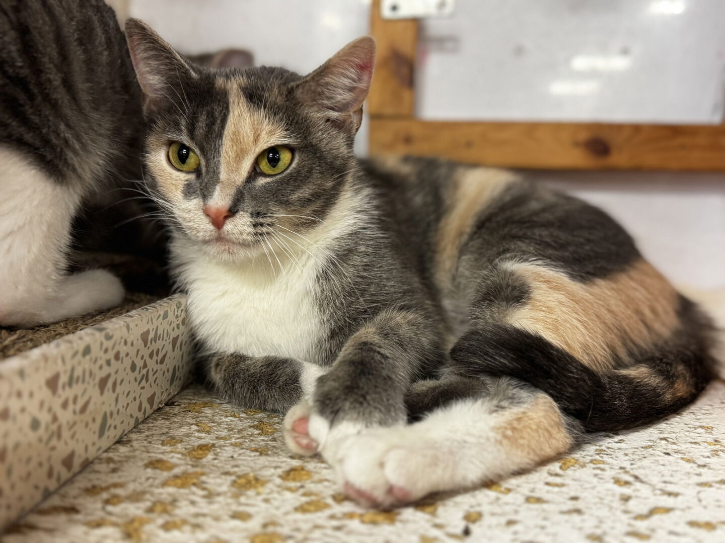DOB: 10/30/2022 Dainty Cat was left behind with her kittens. This didn’t stop her from being a wonderful mom. Nor did it destroy her faith in humans. Now her kittens are in homes of their own and Dainty Cat is ready for her furever home too. She is a petite dilute calico lady, very calm and quiet and super loveable. She likes being cuddled and getting belly rubs. Her foster thinks she would be a wonderful family pet and would be great with kids. She also got along with her foster’s cat. **Come meet me at the cage free adoption center. All cats are spayed or neutered, vaccinated and tested for FIV/FeLV. **If interested in adopting me, please fill out an online adoption application at https://colonycats.org/adoption_app.html to expedite the process. Due to the large number of inquiries received, we are unable to respond to emails quickly.** DOB: Come meet me at the cage-free Adoption Center! All cats are spayed or neutered, vaccinated and tested for FIV/FeLV. **If interested in adopting me, please fill out an online adoption application at https://colonycats.org/adoption_app.html to expedite the process. Due to the large number of inquiries received, we are unable to respond to emails quickly.**