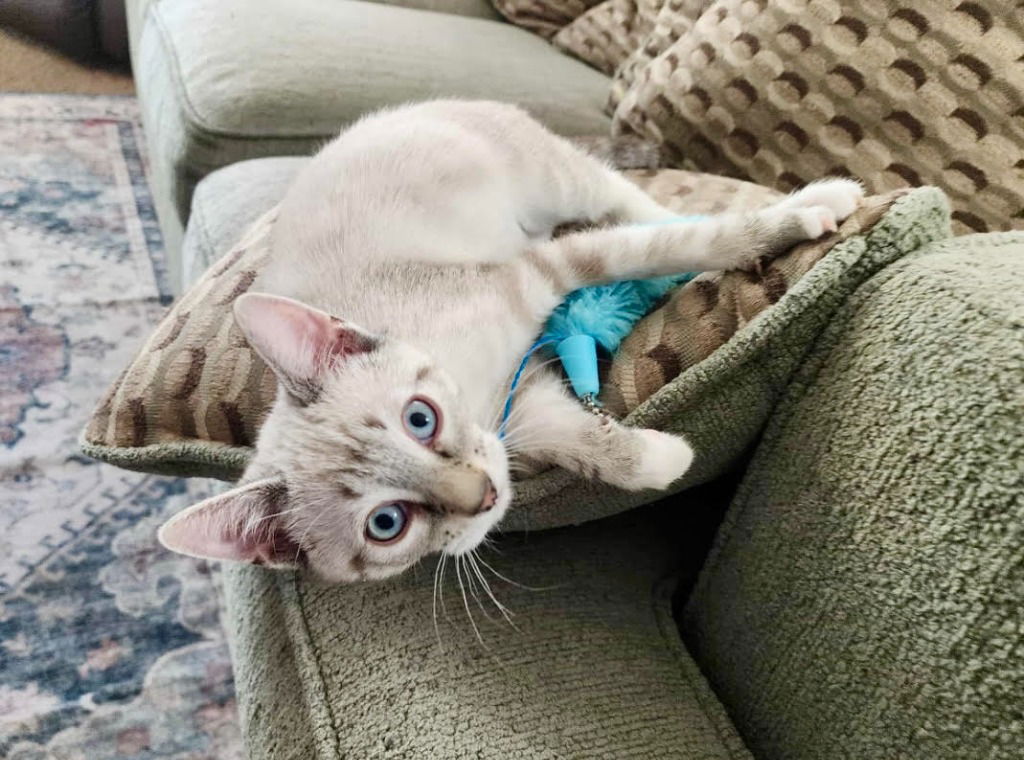 Hi! I am Dakota and I am basically a social butterfly, but in kitten form. My foster mom jokes that I am part canine because I am literally her shadow – I follow her everywhere so she is never lonely.I am sort of obsessed with feathers, particularly if they are on the end of a feather wand, I like to pretend that they are birds, and I will jump high into the air to grab them! I would be most happy in a home with another playful kitty to keep me company, and as luck would have it, my two sisters are also looking for their forever homes. So, are you looking for a forever furry friend – or two – who love a lot of lap time? If so, I am your kitten! If you are interested in adopting a CAWS pet, please fill out an online application at https://caws.org/adoption-application