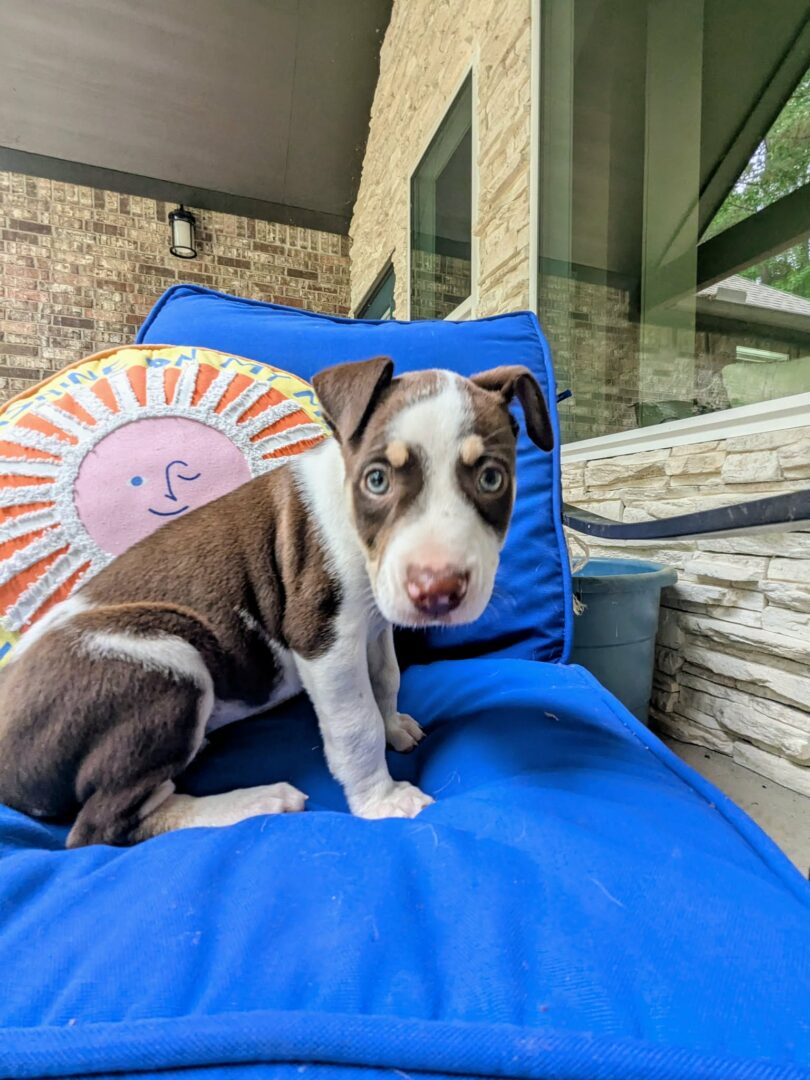 Hello. My name is Dana. I There are 4 of us; Mel, Robbie, and Santos. We are about 2 months old and adorable. We play so well together and with my foster’s other 4 dogs. And we love the grandchildren. Bedtime and baths are easy. We are all very sweet and would be happy in a home with another dog. Of course, I think I’m the prettiest. You can judge for yourself by meeting with us. I should be at the next adoption event. Please come check all of us out!