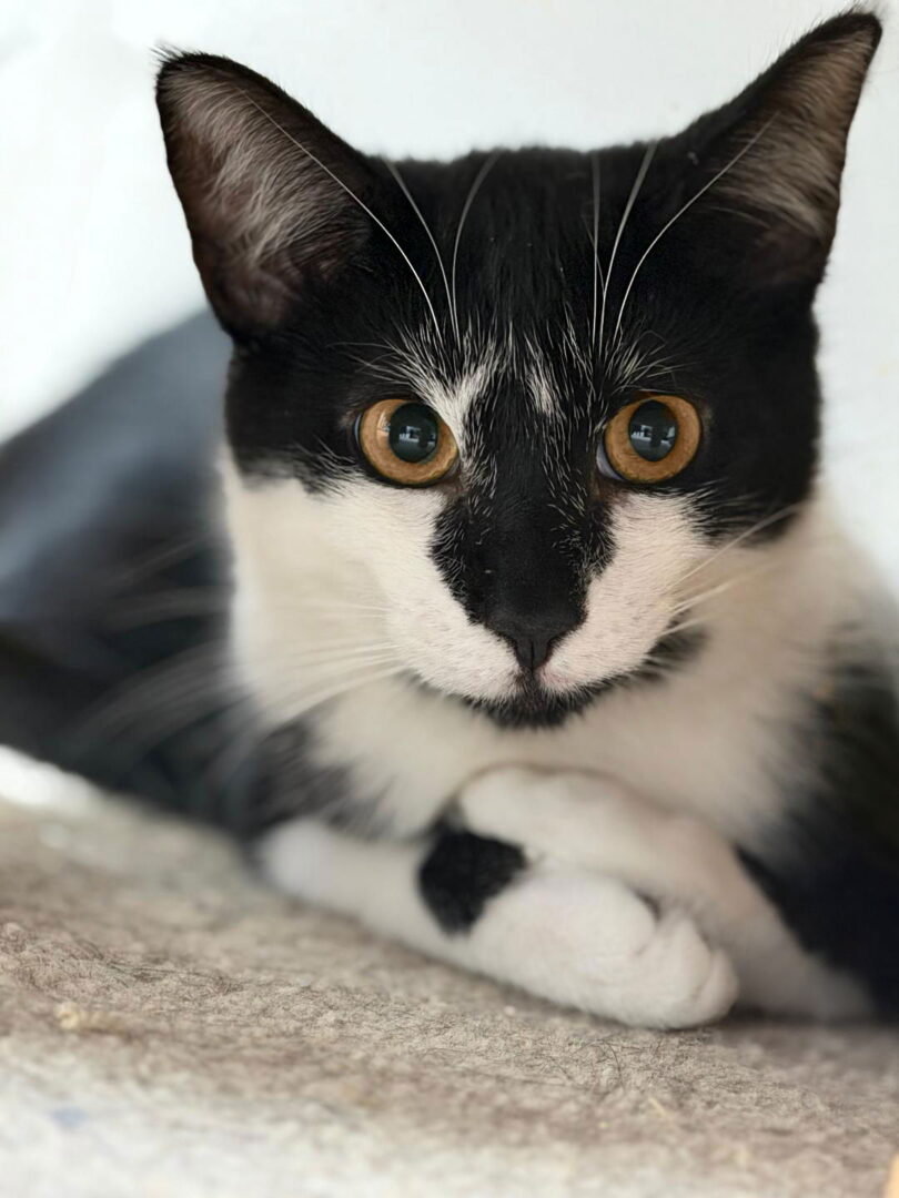 See Dapples’s HomepageGo to our official websiteMeet Dapples, a handsome black-and-white kitten with the most distinguished markings you’ve ever seen. This sweet boy is a little shy at first, but with patience and kindness, his true personality shines through. Every day he grows friendlier and more confident thanks to the love he’s received so far. Dapples is looking for a calm, caring home with someone who will continue to show him love, attention, and reassurance. With the right person, he’ll blossom into a devoted companion.