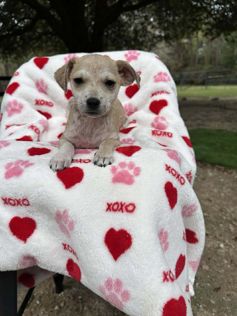 See Darcy *Arriving 12/6*’s HomepageGo to our official websiteYou can fill out an adoption application online on our official website. Darcy is an absolutely adorable 2-month-old Chi mix who is truly pocket-sized—currently weighing under 2 pounds! Despite her tiny frame, she has a big, bright personality and loves to play, especially splashing around in her water dish. Darcy came into rescue in Texas with severe skin issues, almost no hair, and parasites, but with proper treatment and lots of love, she is healing beautifully and blossoming into the cute, friendly puppy she was meant to be. Like any young pup, Darcy will need patience, guidance, and the usual puppy training to help her grow into a well-mannered companion. Darcy may be small, but the joy she brings is has no limit. Darcy is from Texas. They arrive in Minnesota on 12/06/2025 and will need to be picked up from the Ruff Start Rescue office in Princeton, MN between the hours of 4:30pm and 8pm. Please plan for their arrival accordingly as we cannot accommodate pickups outside of this time frame. Since they haven’t arrived yet, they are available exclusively through Ruff Start’s Foster to Adopt (FTA) Program. Click here to learn more about the FTA program. Once they get to Minnesota, they might require further veterinary care. Ruff Start’s veterinary suite is located in Princeton, MN, and, as the foster, you will be required to transport your dog to and from these vetting appointments. If you are interested in getting to know this animal better, please fill out an adoption application. An adoption application is the best way to show your interest in an animal and is not a binding contract. To learn more about Ruff Start’s adoption process and the care our foster animals receive, please visit our How to Adopt page. *Rescue puppies are notorious for losing their birth certificates before entering our rescue. We cannot guarantee the breed or size they will be full grown.* If you are unable to adopt but want to help this animal and others in our care, you can donate to support the medical and veterinary needs of all Ruff Start Rescue animals.