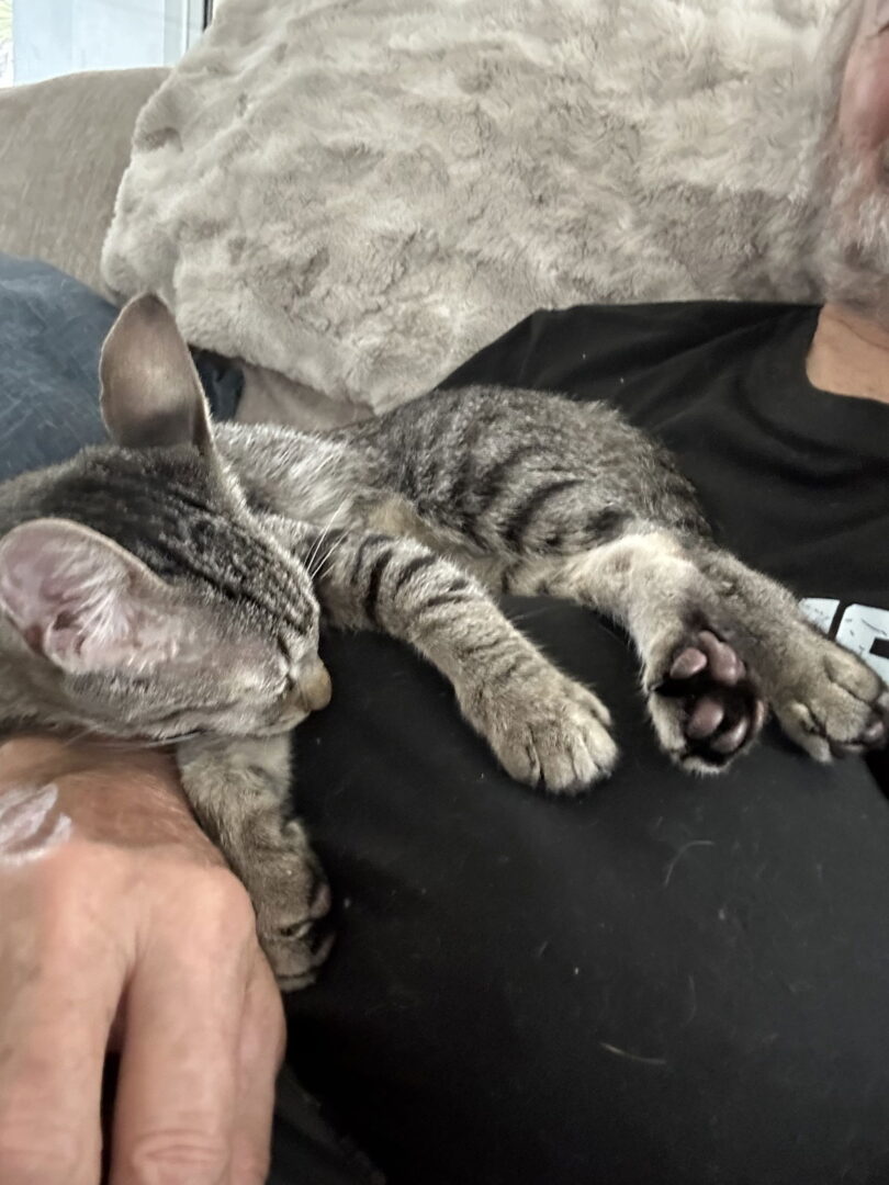 See Dash’s HomepageGo to our official websiteYou can fill out an adoption application online on our official website.Come meet Dash the sweetest little tabby girl at just 6 months old! This charming kitten is a true delight, with a personality that's as warm and cuddly as her fur is soft. Dash loves to play and explore with her siblings, whether it's chasing after toys or engaging in playful pounces. But when playtime is over, this adorable fur-ball is happiest curled up in a human lap, purring contently and soaking up all the attention and affection she can get. Dash is ready to bring joy, cuddles, and endless entertainment to her forever family. Contact Dex Dexter at 850-766-2615 to set up a meet and greet. Dash is spayed, has all her shots, has a microchip and has a negative SNAP test. Please fill out an adoption application on dexterskitties.org. Adoption fee is $80.00