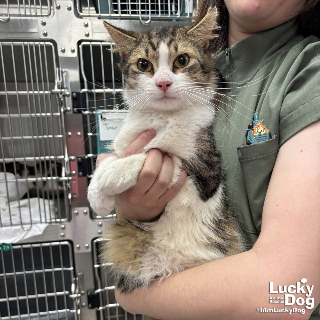 Please contact Lauren McCarty (laurenmc@luckydoganimalrescue.org) for more information about this pet.Sweet kitty needs a forever home!DASHER NEEDS A FOREVER HOME! Name: Dasher Best Guess for Breed: Domestic Medium Hair Age: 1 year Est. DOB: DOB 12/23/24 SEX: Male Weight: 8.5 lbs as of 12/24/25 Coloring: White With Tabby Type of Hair: Medium Gets Along With: Dasher will likely get along with other cats, dogs and kids with an acclimation period. We’re happy to help with tips and tricks! Currently Living at: Shelter – coming to the DC area soon! I am Looking For: My loving forever family! Hi! I’m Dasher, and I am a cute kitty! I won’t ask for much- just some love, cuddles and lots of toys so I can run and play and be myself. Siblings: Dasher, Dancer What my Foster Says About Me: Coming soon! TO ADOPT: The adoption fee for adult cats is $200 ($350 for two cats adopted together). The adoption fee for a kitten (under 7 months old) is $220 ($380 for two kittens adopted together).If you are interested in adopting, please complete the Adoption Questionnaire online at bit.ly/adoptaluckycat. Lucky Dog Animal Rescue does our best to provide accurate information about the cats we have for adoption. That said, we cannot make any guarantees about age, breed or temperament. Thank you for contacting Lucky Dog Animal Rescue and helping to save a life! Please visit us online at www.luckydoganimalrescue.org . BE A FOSTER!!! Fosters make it possible for Lucky Dog Animal Rescue to save and care for homeless and abandoned dogs! To learn about fostering, please contact fostering@luckydoganimalrescue.org BE A SPONSOR!!!! Sponsors help Lucky Dog support the many dogs we save. To learn more about sponsorship, please contact info@luckydoganimalrescue.org !