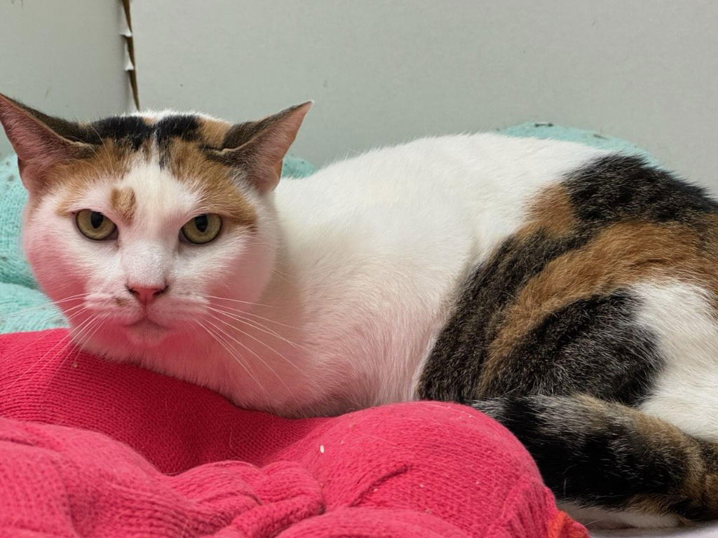Debbie is approximately 7 yrs old. She is a shy and cautious girl. She is very timid and takes time to trust. Debbie was rehomed due to a change in her living situation, and she is still adjusting to being ripped away from the only humans she ever knew. Once Debbie settles, she will jump in bed with you. She loves chin scratches and butt rubs. Debbie hates being picked up and will try to scare you with her hiss, but she’s all bark with no bite. Debbie needs a patient adopter who will give her the time she needs to adjust. Apply for this kitty: https://rescuekitty.org/adoption/adoption-application