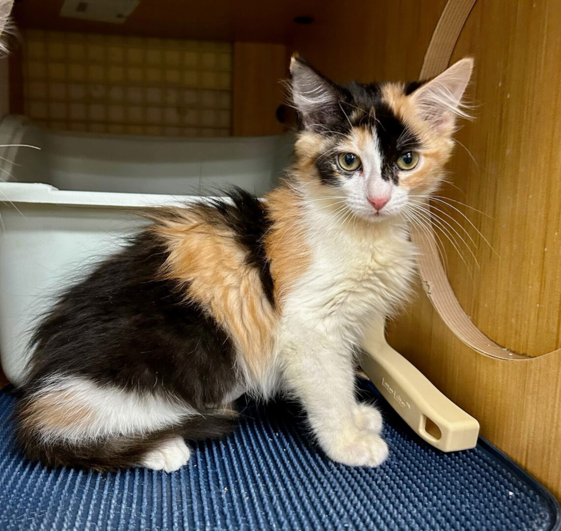 All of our cats are current on vaccines, combo tested (FIV/FELV) , spayed/neutered, microchipped, given rabies vaccine as age appropriate, flea treatment and dewormer as needed Delta Dawn is a charming calico kitten, with a heart as gentle as her purrs. She was rescued as s a bottle baby from Mesquite Animal Shelter. Her story began on a scorching afternoon, when she was spotted in a risky location out in the countryside, vulnerable to the dangers of wildlife and brought to the shelter. She is a little survivor. Delta Dawn can seem a bit shy when you first meet, however, with gentle affection she will quickly warm up and her true friendly nature will shine through. Once she feels safe, Fuzzy will curl up in your lap, purring her sweet purr. Playtime is her favorite—chasing toy mice, batting fuzzy balls, and darting through her the room. Delta D will thrive in a home with another kitten her age or a playful cat, so she can share her playful adventures and grow up. If you open your heart and home to Delta, you’ll gain a loyal friend who will shower you with affection and fill your life with warmth. Delta had her shots, spayed, microchip, etc and is ready to become a treasured member of your family. Will you be the one to give her the forever home she deserves? She is spending time at Petco habitat at Lovers Ln. in Dallas. Stop by to meet her and her cage mate Fuzzy. They deserve a home fur Christmas! . System ID: KSH-148-25 – DOB: 8//24/25 DSH calico**Want to adopt? Get started here: https://catmatchers.org/adoptions/adoption_application_page/ **Do you or someone you know want to help in saving cats' lives? Become a Foster Parent! We are ALWAYS looking for more people to become qualified Foster Parents. For more information on the Foster Program or helping in other ways, click here: https://catmatchers.org/volunteer/ You CAN make a difference!!!! **Not quite ready to adopt, but would like to donate to the care of this or other animals during their temporary stay with Cat Matchers? Visit this link: https://catmatchers.org/donate/ Follow us on Facebook, Instagram, Twitter: @CatMatchers