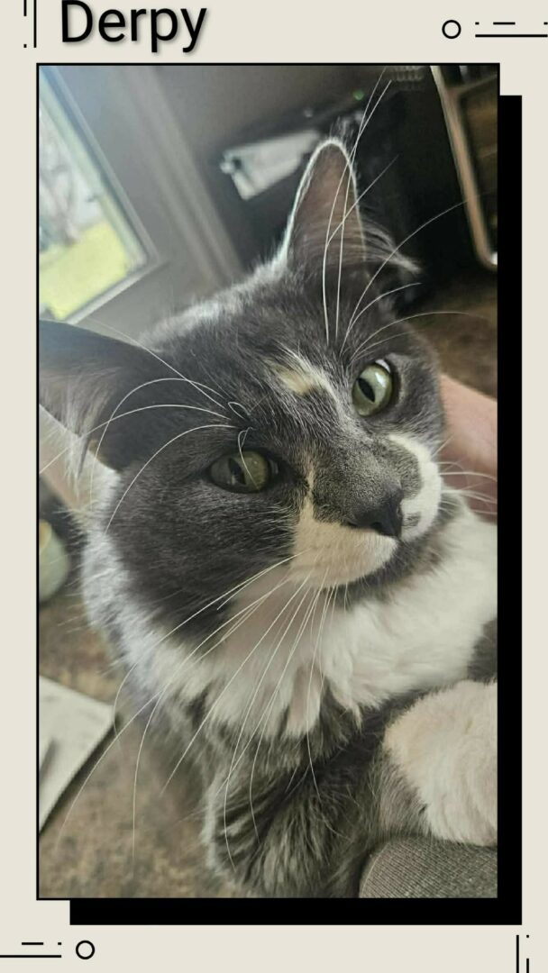 DERPY – DMH, male, neutered, grey & white, DOB Feb 4/25
