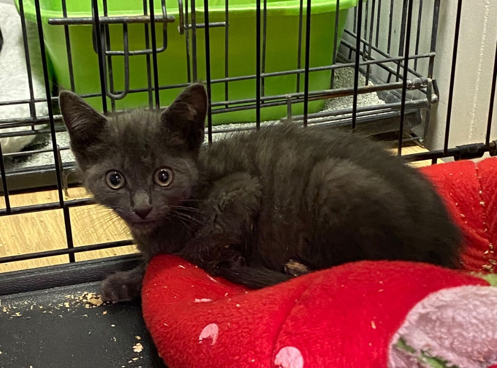 DG somehow managed to run into our local Dollar General and hid under one of the coolers. It took our volunteers almost 2 hours to catch him. He appeared feral for the first few days, because he was so very scared. Thankfully once he calmed down his sweet nature came back, and we realized he is very affectionate. He’s just a tiny guy, but somehow, in his past, he lost most of the toes on his back foot, but this had healed over by the time we got him. He is now living with ghost, and they are best buds. All our young kittens are required to be adopted in pairs (or to homes with other cats or kittens) to prevent Single Kitten Syndrome. There are many benefits to adopting two kittens, including: One kitten can become bored and lonelyTwo kittens will keep each other busy and out of troubleHaving two kittens is very entertaining!You will have fewer behavioral issues with two kittensYou will help TWO babies get out of a shelter instead of one, and make room for us to help more! Our adoption fees are reduced for a second kitten. :)If you are interested in adopting this pet, please go to www.midwestpetrefuge.com/adopt to complete an application. If you have any questions, please email us at adopt@MidwestPetRefuge.comAll our pets are spayed/ neutered, microchipped, vaccinated and treated for parasites prior to adoption. We strive to match our adoptable pets to the best homes for their needs and personalities. Adoptions are not done on a first come, first serve basis. They are done in the order of what homes are the best match for that particular pet. If you'd like to apply, please go to our website, http://www.midwestpetrefuge.com Click on Adopt and choose the correct application. If you have not heard from us, please shoot us an email at midwestpetrefuge.com to check on the status of your application. Thanks!