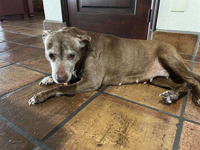 From her foster- House trained, enjoys creating her own back scratches on the grass, likes to be near her human, does not whine when alone, barks at strangers, comes back when called, does not beg for food and has small appetite, a little wobbly in the hind quarters, very happy girl.