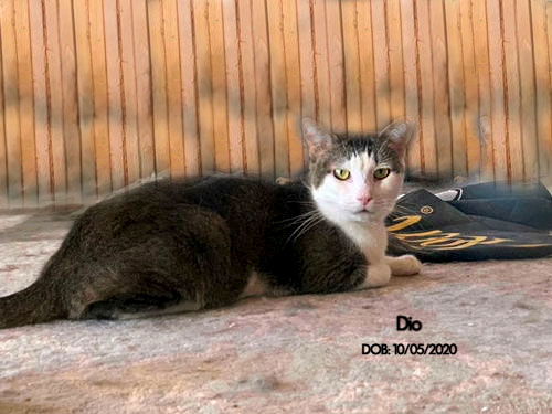 See Dio’s HomepageGo to our official websiteDio is loving life with his foster sister and brother at one of our foster homes. He is people and cat friendly and loves rubbing on his foster dad's legs.
