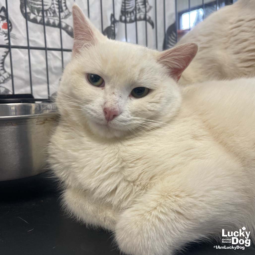 Please contact Jessie Cheng (jessie.cheng@luckydoganimalrescue.org) for more information about this pet.There’s nothing dirty about falling for Dirty Kev!DIRTY KEV NEEDS A FOREVER HOME!!!! Name: Dirty Kev Best Guess for Breed: Domestic Short Hair Age: 1.5 years (Est. DOB: 7/30/2023) SEX: Male Approximate Weight: 9.2 lbs Coloring: White Type of Hair: Short Gets Along With: With proper integration, Dirty Kev will likely get along with cats, dogs, and kids with an acclimation period. We’re happy to help with tips and tricks! Currently Living at: Foster home in the DC area! I am Looking For: My loving forever family! Hi! I’m Dirty Kev, and I am a sweet kitty! I won’t ask for much- just some love, cuddles and lots of toys so I can run and play and be myself. What My Foster Says About Me: Coming soon! TO ADOPT: The adoption fee for adult cats is $200 ($350 for two cats adopted together). The adoption fee for a kitten (under 7 months old) is $220 ($380 for two kittens adopted together).If you are interested in adopting, please complete the Adoption Questionnaire online at bit.ly/adoptaluckycat. Lucky Dog Animal Rescue does our best to provide accurate information about the cats we have for adoption. That said, we cannot make any guarantees about age, breed or temperament. Thank you for contacting Lucky Dog Animal Rescue and helping to save a life! Please visit us online at www.luckydoganimalrescue.org . BE A FOSTER!!! Fosters make it possible for Lucky Dog Animal Rescue to save and care for homeless and abandoned dogs! To learn about fostering, please contact fostering@luckydoganimalrescue.org BE A SPONSOR!!!! Sponsors help Lucky Dog support the many dogs we save. To learn more about sponsorship, please contact info@luckydoganimalrescue.org !