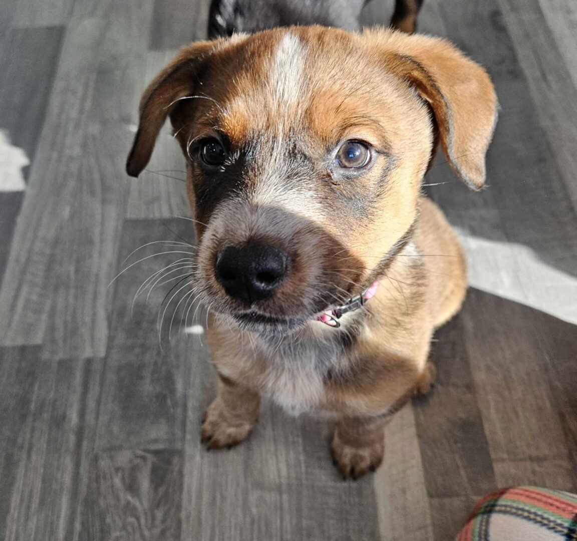 Meet Divine. Very playful and lovable. She's a curious puppy and loves to be with ppl. She will smother you with kisses. She has a pretty calm demeanor and loves to cuddle. Does great in crate. We are still working on potty training and getting there.