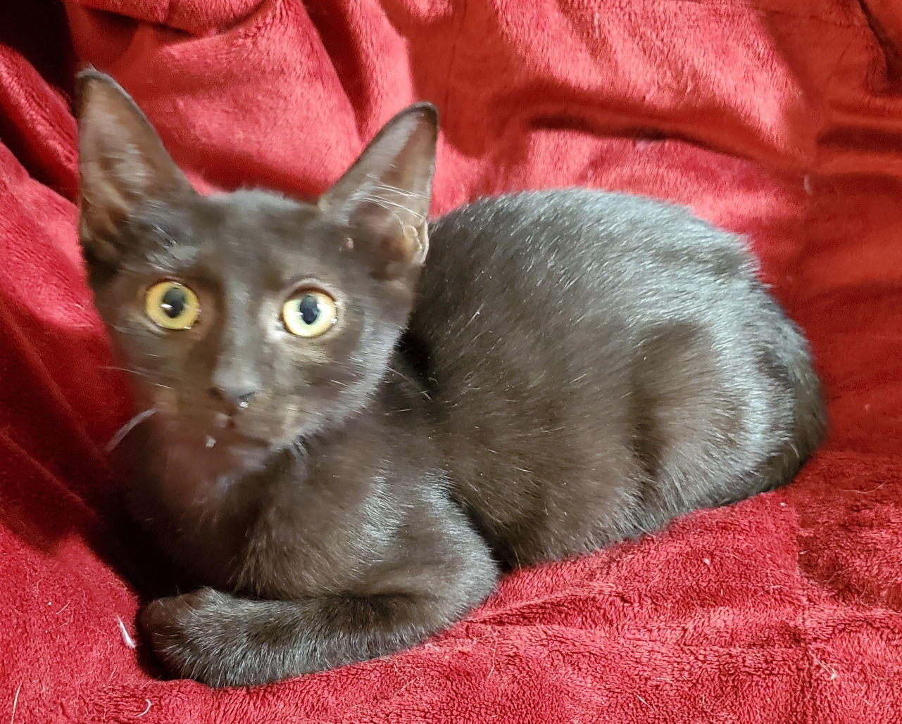 See Doby’s HomepageGo to our official websiteYou can fill out an adoption application online on our official website.Handsome black male kitten almost six months old. Neutered, tested for fiv/leukemia and current on all shots. This guy has a shiny soft black coat just perfect for petting. He is a very calm sweet boy but loves to play. Gets along with everyone.