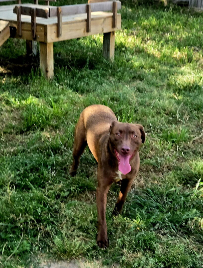 Dolce is the kind of girl who just needs a moment… a quiet second to look into your eyes and decide yes, you’re my person. And once she does? Oh, she’s all sunshine. This chocolate lab mix beauty is a gentle, happy-hearted girl who loves her little circle of friends—especially her bestie Gabbana and her two other chocolate lab pals. You’ll often find her out in the play yard, soaking up fresh air, playing, and enjoying those small, precious moments outside her kennel. But Dolce has spent nearly her whole life waiting. Since she was just a baby. She dreams of more than fences and limited time outside… she dreams of open fields, soft grass, and running freely through wildflowers with someone who loves her. She’s not complicated, just thoughtful, a little cautious at first, and full of love once she knows she’s safe. A gentle soul. A quiet dreamer. A girl who deserves her chance. Dolce is ready to see the world… she just needs someone to show it to her.
