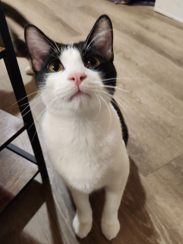 Domino is a spunky boy full of kitten energy and love! He loves both playtime and cuddle time with his humans and kitty siblings alike, and likes to follow his humans around to feel included in all there is to do around the house.To inquire about adopting this cat please complete an adoption application at tinyurl.com/ccapadoptions Once you submit an adoption application, a foster will reach out within 48 hours to schedule a meet-and-greet or ask any additional questions. If you haven’t heard back within that time, please contact **adoptions@sanantonioferalcats.org** so we can follow up. If the cat you’re interested in isn’t listed in the dropdown menu, it may be pending adoption or recently adopted, but the website hasn’t been updated yet. Feel free to email us for confirmation. Thank you for choosing to adopt one of our amazing cats!