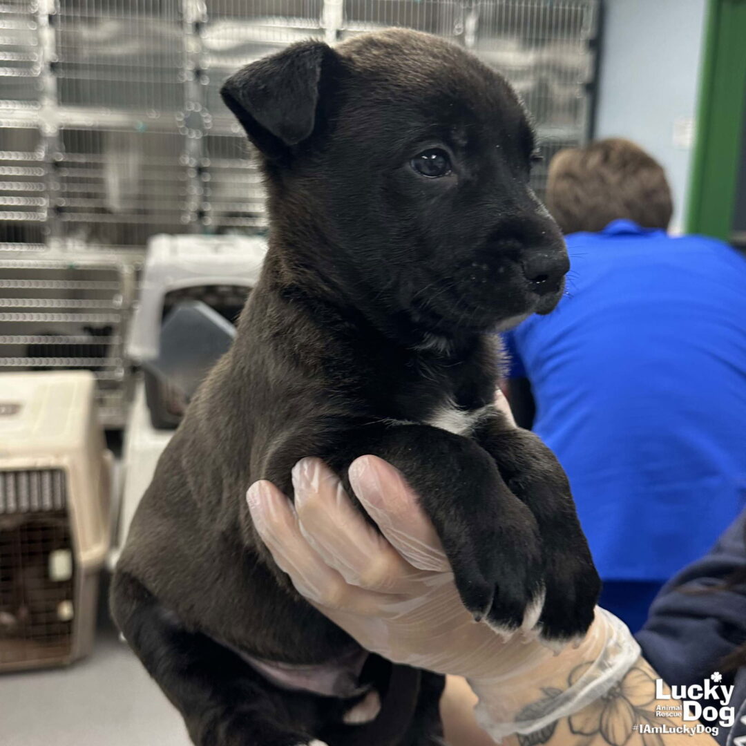 Wee baby ISO forever home! DONNER NEEDS A FOSTER OR FOREVER HOME!!!! Name: Donner Best Guess for Breed: Terrier/Lab Best Guess for Age: 6 weeks as of 12/23 SEX: Male Estimated Weight (puppies’ weights change quickly!): 6.7lbs as of 12/17 Gets Along With: Most puppies are in the prime of their socialization window and will do well with other dogs, cats and kids so long as they receive patience and proper training. Currently Living at: South Carolina shelter—needs DC area foster or forever home! Special Adoption Considerations: Puppies under 6 months of age need to have multiple potty breaks/exercise throughout the day. Potential adopters with a standard 8-hour workday must be willing to make arrangements to meet the needs of their puppy. Donner is Looking For: Hiya! I’m Donner! Me and my littermates, Darlene, Donatella, Dakota , Darcey, Dasher & Donnie, have loved our time in the puppy pile, but we are each ready to pack our bags and find our very own forever home! I’m looking for a home that will let me play with toys and get my puppy zoomies out and give me snuggles in between playtimes. When I’m a little older, I can’t wait to explore my new neighborhood on lots of walks, and I’d really like to make a bunch of doggie friends along the way. Oh, and I should probably take a puppy obedience class or two so I can show you how smart I am. What do you say? Do you have room in your heart for me? What My Foster Says About Me: Coming soon! Puppy Vetting Requirements: Lucky Puppies have had their age appropriate vaccines, but may not yet be “fully” vaccinated. It is the adopter’s responsibility to ensure that the remaining puppy vaccines are given at the appropriate time. Please also keep in mind that, until your puppy is fully vaccinated, they are at greater risk for illness than an adult dog. Due to this puppy’s young age, she/he has not yet been spayed or neutered. As part of the adoption contract, it will be your responsibility, as the adopter, to ensure that this is done no later than 5/8/25. There are NO EXCEPTIONS and NO EXTENSIONS to this date. A non-refundable spay/neuter deposit will be collected if you would like Lucky Dog to pay for this animal to be spayed/neutered at one of our low cost partner vets. Your new puppy will need to work on their house training and will also need to go to obedience school so they can grow into a well-socialized dog! TO ADOPT: The adoption fee for this puppy is $485, which includes the cost of routine vetting and transport from the shelter. If you are interested in adopting, please complete the Adoption Questionnaire online bit.ly/adoptaluckydog Lucky Dog Animal Rescue does our best to provide accurate information about the dogs we have for adoption. That said, we cannot make any guarantees about age, breed or temperament. Thank you for contacting Lucky Dog Animal Rescue and helping to save a life! Please visit us online at www.luckydoganimalrescue.org . BE A FOSTER!!! Fosters make it possible for Lucky Dog Animal Rescue to save and care for homeless and abandoned dogs! To learn about fostering, please contact fostering@luckydoganimalrescue.org! BE A SPONSOR!!!! Sponsors help Lucky Dog support the many dogs we save. To learn more about sponsorship, please contact info@luckydoganimalrescue.org . ​