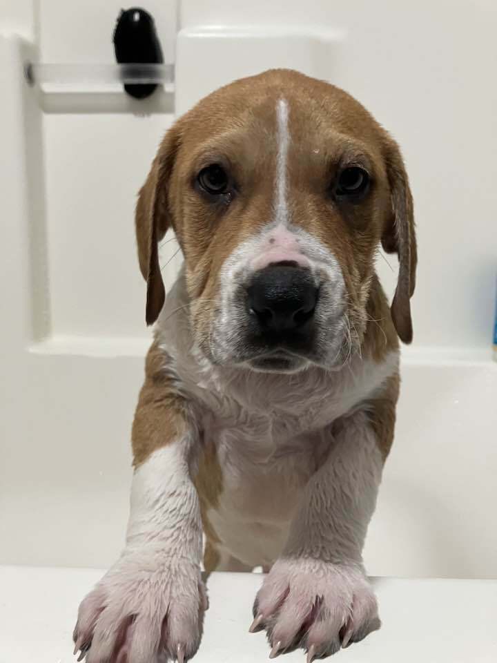 The Park Pups came to AHS after living outside with their mama during the recent cold snap. They are a coon hound/pitbull mix, which gives them all the wrinkles AND all the ears!Donovan was named after Bloedel Donovan park. He is a really chill guy, though, so he mostly goes by Donnie. If you look up ‘roly poly’ in the dictionary you just might see his picture! This chubby guy is all about having a good time. He loves to follow his people around, play chase or wrestle with other puppies, snooze, and eat. He loves exploring the outdoors at his foster home, and always finds a leaf or stick to tease his sibling with, which starts the next round of chase and wrestle. Donnie is an independent guy as well, not minding time to himself. He can play and explore solo without any problems. When Donnie sleeps you’ll know exactly where he is snoozing, as his snoring skills are 10/10 for being such a little guy.Donnie has been fostered with dogs ranging from 30-60lb, and he has wanted to be friends with them all. He has had the chance to be curious about cats, and has lived with 9 and 12 year old kids. Donnie would love to be your best friend, at your side all the time, or he would love to pal around with an older, playful dog who can take him under their wing.These cute and cuddly pups are almost 12 weeks old (born on 12/17/24), have received their first round of vaccines, and are ready to melt hearts. These pups will need to be signed up for a basic obedience class prior to being adopted.