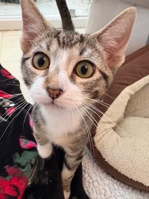 Dora: Biscuit Master, Purr Machine, and People-Loving Princess Dora’s story could have taken a very different turn. This confident, outgoing little tabby girl came from Marin Humane, where she was adopted and given as a gift to someone with a senior cat. It wasn’t the best fit for lively Dora, and her family was heartbroken to let her go — but they reached out for help so she wouldn’t have to return to the shelter. That’s how Dora came to us: safe, loved, and ready for her true forever home. Dora is as friendly as they come. She’ll trot right over for pets and attention, and once she settles into your lap, her purr motor runs nonstop. She’s also a master biscuit-maker, kneading away with her tiny paws to show just how happy she is. When it’s playtime, Dora’s full of energy and joy — wand toys, feathers, and crinkly balls don’t stand a chance. She’s not just a really pretty tabby girl; she’s also a bundle of love who wants nothing more than to share her days with people who adore her. Dora would thrive with another gentle kitten or young cat friend to share in the fun — and she’s more than ready to bring joy, laughter, and endless cuddles to the lucky family who makes her theirs. Available for adoption in San FranciscoFollow her foster adventures: @rsinr Please note:Dora needs a playmate in her new homeIndoor only For more information & an online application go to https://www.givemesheltersf.org/adoption/cat.php?id=12325&ts=1761721354&src=rg