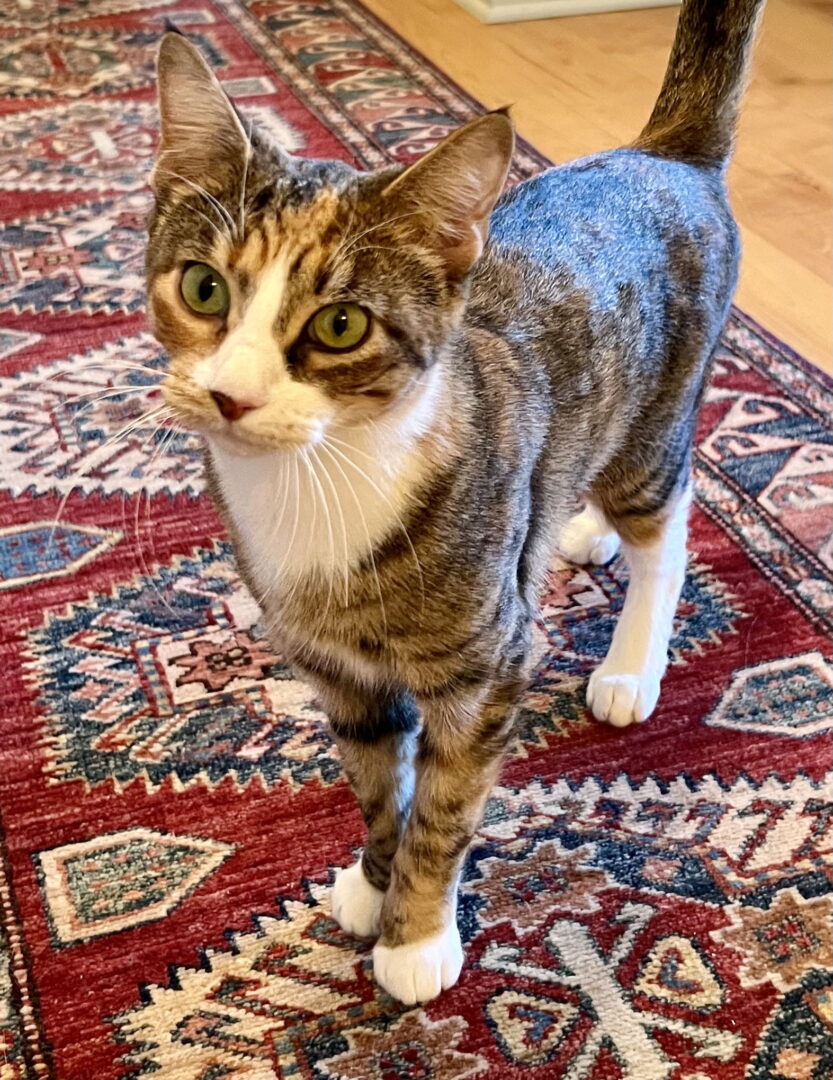 Meet Dorita, a lovely young lady ready to find her forever home! She is now playing at our Glen Mills adoption center. With her stunning markings of browns, oranges, grays, and white patches, she’s a true masterpiece of nature. Dorita’s beautiful coat is just as sweet as her personality, making her the perfect companion for anyone seeking a loving feline friend. If you’re looking for a sweet girl with a striking appearance and a heart full of affection, Dorita is the one for you. Come meet this pretty girl today and let her charming presence bring warmth and joy into your life! My family just brought Dorita home to foster. And it’s true, she charmed us all immediately! Dorita is very social, outgoing and confident. She seemed to feel right at home quickly and was delighted to keep us company. Dorita will surely be a devoted and affectionate member of her forever family. Plus, sweet Dorita loves to curl up on your lap. She’s also big on checking in with her people by offering gentle cheek rubs on both sides of your face and gazing into your eyes. We love Dorita’s endearing ways and the connections she makes with her special people. Addition- We are Dorita’s foster family. From Day 1 Dorita has been so friendly and affectionate with all of us. She wants nothing more than to be contentedly near her humans. This pretty girl has an even temperament and relaxed attitude. Plus she enjoys playing and being a part of the activity around her. So, we believe Dorita is the ideal cat for a busy family with children. (She would also be happy in a quiet home, especially if her human had a few toys for her and enjoyed playing with a wand toy.) Dorita is now playing in our Glen Mills PetSmart adoption center while awaiting your visit. Please stop in for some playtime! Please submit our no-obligation Adoption Application for a meet and greet or to adopt: https://forgottencats.org/adoption-application/. Thank you! (Foster: Laurie B)