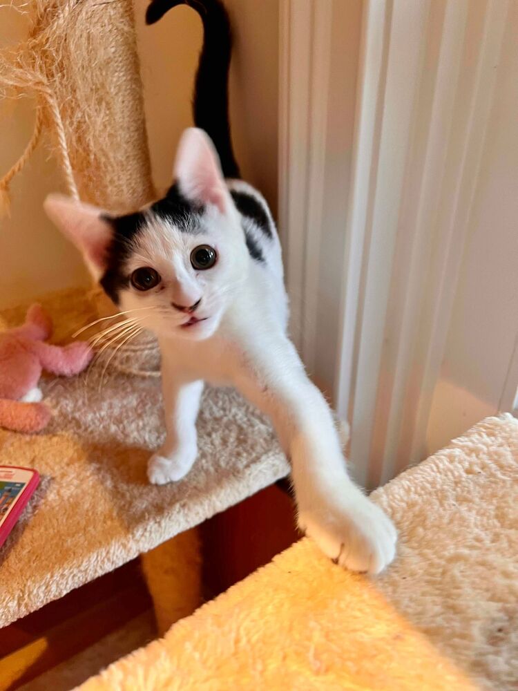 Dottie may be small, but she's already proven herself to be a true survivor. To say that this adorable little kitten had a rough start in life would be an understatement. As a newborn on the streets, Dottie was attacked by some sort of animal and then found herself injured and in poor health at a scary and overcrowded shelter at only a few days old. Then, just as her deadline was coming up, she was pulled by Forever Fortunate Felines and brough into a foster home where she has blossomed into a healthy and happy kitten who is ready to find her forever family.Dottie is sweet, playful, and affectionate. She can be a little shy at first but once she warms up she loves nothing more than curling up in a warm lap for snuggles. Her ideal home would offer plenty of love, playtime, and cozy spots for cuddling. She's a young cat, and she would love to be adopted with her sister, Lottie, or go to a home with another young cat.So, are you ready for a dash of Dottie in your life? This little survivor has so much love to give and is eager to become your new best friend. Don't let her size fool you – she's got a personality as big as her heart!WE DO NOT HAVE A PHYSICAL LOCATION AS WE ARE A FOSTER-BASED ORGANIZATION. PLEASE SUBMIT AN APPLICATION TO BE IMMEDIATELY CONNECTED TO A SCREENER.Apply at online application (catsfff.org/adopt)View all of our adoptable cats here (catsfff.org/cats)Our adoption fees are listed here (catsfff.org/adoption-fees)