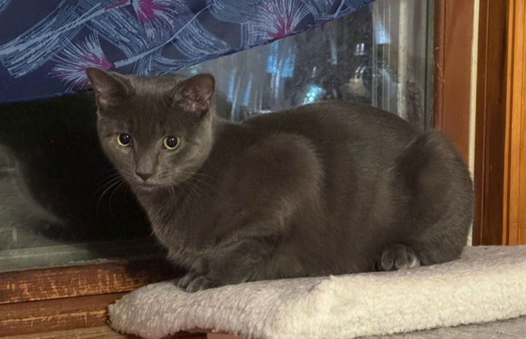 Shorthaired with smooth, beautiful coat. Easy going and laid back, he loves to sleep on cat trees and window ledges. Very social with other cats, he has been raised with his litter mates and would love have feline siblings to grow with. Playful, social and goofy with people, he would be a great family cat.