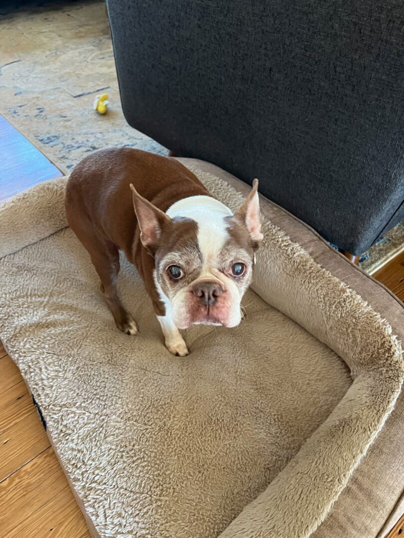 Hi everyone, I’m Dozer! I am a very chill guy that likes to go with the flow. I am 12 years old and would love to find a family that will love me forever. I have trouble seeing and hearing, so I’d prefer a calm house that understands that I may need extra attention. I’m not great with stairs and a pool would not be good for me either. I get along with other dogs, but I would be happy as your only snuggle bug too. I would be great for a senior and kids, as long as they’re gentle. I am house, crate, and leash trained. I love to play with my soft toys and stretch outside. I hope I can find a family that is looking for a quiet, sweet boy like me! My adoption fee is $75, but if you are a senior yourself (65+), my adoption fee is waived. Thank you for your continued support in our rescue efforts! If you are interested in any of our Boston Terriers or would like to be eligible to adopt a Boston Terrier through our rescue in the future, please fill out an application. It can be found at www.texasbostons.com. Click on the Rescue tab and then on the Adopt Now! tab. Here you will find our adoption requirements along with a link for an online adoption application. This will allow you to get on our list of approved homes so you can immediately adopt a Boston Terrier when it becomes available through Boston Terrier Rescue of North Texas. We are always looking for good foster homes. These homes allow us to rescue more Boston Terriers in need because we have a place for them to go until they are adopted. Please consider becoming a foster home for Boston Terrier Rescue of North Texas. You can fill out a foster application at www.texasbostons.com. Click on the Rescue tab and then on the Foster Program tab. Here you will find our requirements for becoming a foster parent along with a link for an online foster application. This will allow you to possibly become a foster home for one of our little Boston Terriers in need. Thank you for considering the possibility of fostering for Boston Terrier Rescue of North Texas! Any and all Donations are always needed and welcome. Because BTRNT is a 501(c) 3, all donations are tax deductible. If you wish to donate to Boston Terrier Rescue of North Texas, please go to www.texasbostons.com and click on the red "Donate Now" tab at the top left of the page. If you wish to donate dog food or any other item, please mail to: Boston Terrier Rescue of North Texas PO Box 867376 Plano, TX 75086 If you have any questions regarding Boston Terrier Rescue of North Texas please call 844-428-7776 and leave a message. Your call will be returned as soon as possible. Thank you for your continued support in our rescue efforts! Help us Rescue The Bostons!