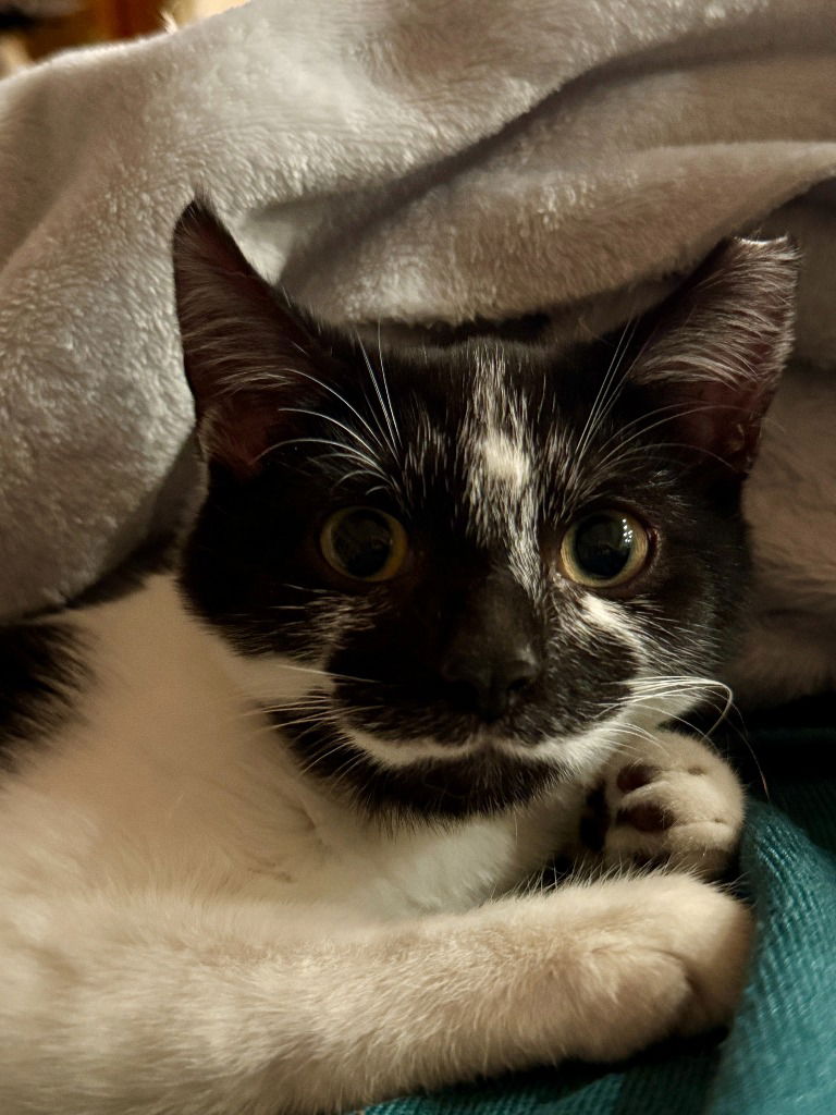 Dr. Ruth is a sweet, quiet black-and-white girl who can be a little reserved at first. But once you scoop her up for a snuggle, her true personality comes out and so does her very loud purr. She melts right into your arms, purring her head off and soaking up the affection. Gentle, calm, and full of quiet charm, Dr. Ruth is the kind of kitten who turns cuddle time into the coziest part of your day.To inquire about adopting this cat please complete an adoption application at tinyurl.com/ccapadoptions Once you submit an adoption application, a foster will reach out within 48 hours to schedule a meet-and-greet or ask any additional questions. If you haven’t heard back within that time, please contact **adoptions@sanantonioferalcats.org** so we can follow up. If the cat you’re interested in isn’t listed in the dropdown menu, it may be pending adoption or recently adopted, but the website hasn’t been updated yet. Feel free to email us for confirmation. Thank you for choosing to adopt one of our amazing cats!