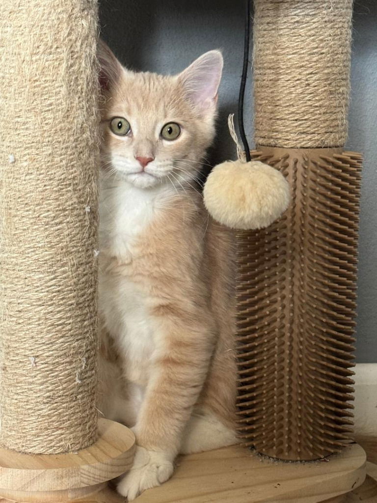 Goose (orange) and Duck (buff) are bonded brothers that were found at a campground. Goose had a large laceration to his abdomen that was treated and is healed up now. They love to snuggle up together, play, chase toys around, and love the laser lights. They would do best if adopted together. They have been neutered, FIV/feLV negative, dewormed, and age appropriate vaccinations. As of August 19, 2025 we are approximately 4 months young.Interested? Send application to strayhavenfeline@gmail.com. We set up meet and greets after an approved application is on file. All cats have been spayed or neutered, microchipped, FIV/FeLV tested, are current on shots, flea treated, and dewormed. An adoption fee applies. If you are interested in me, please send an email to the email address listed in the pet’s description. If no email address is specified, please email info@strayhavenrescue.org. Please allow 3-5 business days for a response.Our adoption application can be found here: http://strayhavenrescue.org/adopt-a-cat/adoption-application/ Check out our website: http://www.strayhavenrescue.orgFind us on Facebook: https://www.facebook.com/StrayHavenSTL