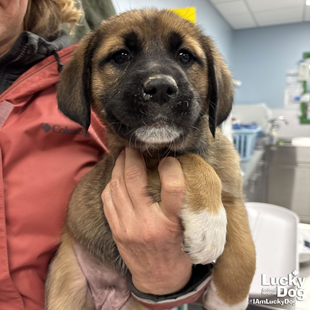 Please contact Kady Hammer (KadyH@luckydoganimalrescue.org) for more information about this pet. DUMPLIN NEEDS A FOREVER HOME!!!! Name: Dumplin Best Guess for Breed: Pyrenees/Lab mix Best Guess for Age: 7 weeks as of 1/23/26 SEX: female Estimated Weight (puppies’ weights change quickly!): 12lbs as of 1/23/26 Gets Along With: Most puppies are in the prime of their socialization window and will do well with other dogs, cats and kids so long as they receive patience and proper training. Currently Living at: DC area foster home Special Adoption Considerations: Puppies under 6 months of age need to have multiple potty breaks/exercise throughout the day. Potential adopters with a standard 8-hour workday must be willing to make arrangements to meet the needs of their puppy. Dumplin is Looking For: Hiya! I’m Dumplin! Me and my littermates, Doris, Darla, Dee Dee, Daffodil, Damion, and Diamond, have loved our time in the puppy pile, but we are each ready to pack our bags and find our very own forever home! I’m looking for a home that will let me play with toys and get my puppy zoomies out and give me snuggles in between playtimes. When I’m a little older, I can’t wait to explore my new neighborhood on lots of walks, and I’d really like to make a bunch of doggie friends along the way. Oh, and I should probably take a puppy obedience class or two so I can show you how smart I am. What do you say? Do you have room in your heart for me? What My Foster Says About Me: Coming soon! Puppy Vetting Requirements: Lucky Puppies have had their age appropriate vaccines, but may not yet be “fully” vaccinated. It is the adopter’s responsibility to ensure that the remaining puppy vaccines are given at the appropriate time. Please also keep in mind that, until your puppy is fully vaccinated, they are at greater risk for illness than an adult dog. Due to this puppy’s young age, she/he has not yet been spayed or neutered. As part of the adoption contract, it will be your responsibility, as the adopter, to ensure that this is done no later than May 29, 2026. There are NO EXCEPTIONS and NO EXTENSIONS to this date. A non-refundable spay/neuter deposit will be collected if you would like Lucky Dog to pay for this animal to be spayed/neutered at one of our low cost partner vets. Your new puppy will need to work on their house training and will also need to go to obedience school so they can grow into a well-socialized dog! TO ADOPT: The adoption fee for this puppy is $485, which includes the cost of routine vetting and transport from the shelter. If you are interested in adopting, please complete the Adoption Questionnaire online bit.ly/adoptaluckydog Lucky Dog Animal Rescue does our best to provide accurate information about the dogs we have for adoption. That said, we cannot make any guarantees about age, breed or temperament. Thank you for contacting Lucky Dog Animal Rescue and helping to save a life! Please visit us online at www.luckydoganimalrescue.org . BE A FOSTER!!! Fosters make it possible for Lucky Dog Animal Rescue to save and care for homeless and abandoned dogs! To learn about fostering, please contact fostering@luckydoganimalrescue.org! BE A SPONSOR!!!! Sponsors help Lucky Dog support the many dogs we save. To learn more about sponsorship, please contact info@luckydoganimalrescue.org . ​